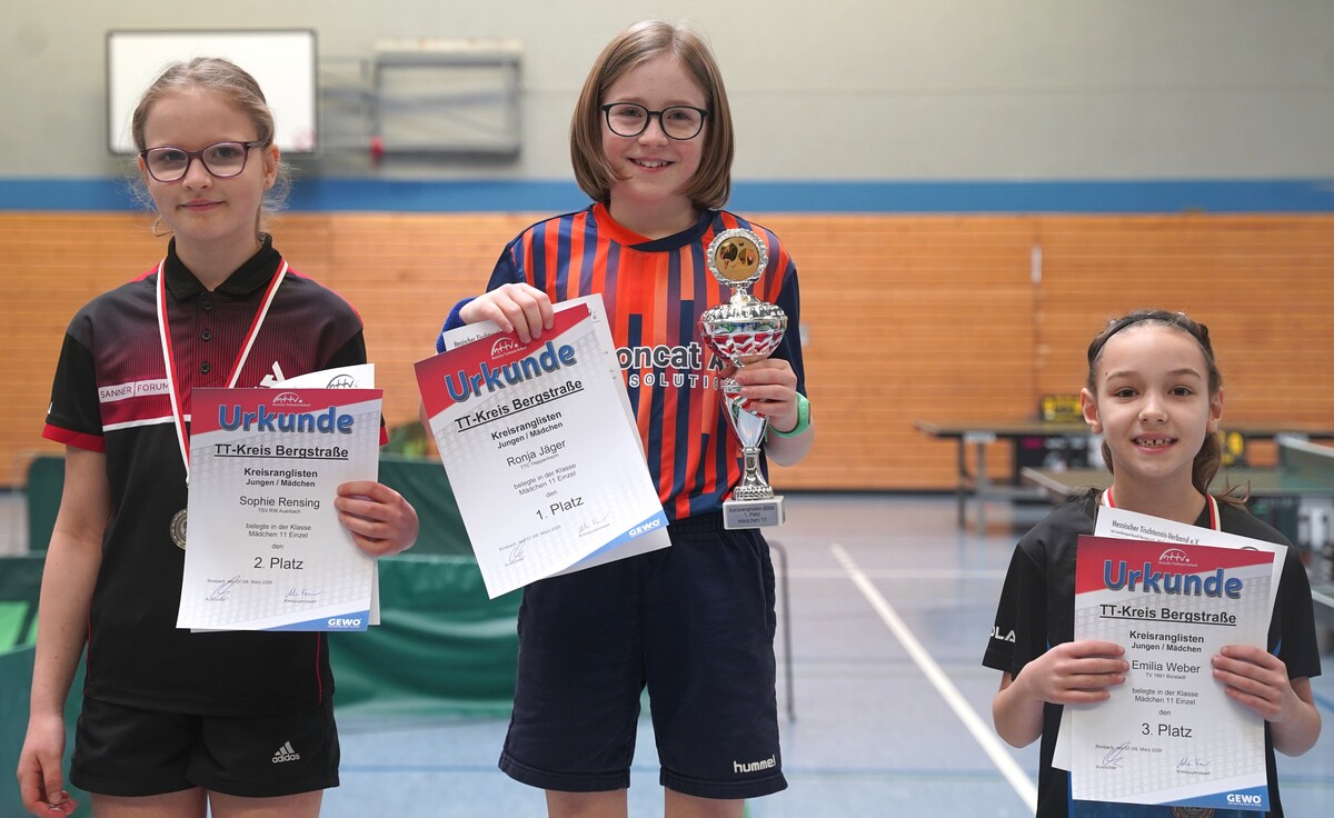 Bei den Kreisranglisten, dem ersten Wettbewerb des Jahres auf Kreisebene beim Nachwuchs, gingen drei der acht Titel am vergangenen Wochenende an den TTC Heppenheim, der mit insgesamt acht Podestplätzen erneut der erfolgreichste Verein war.