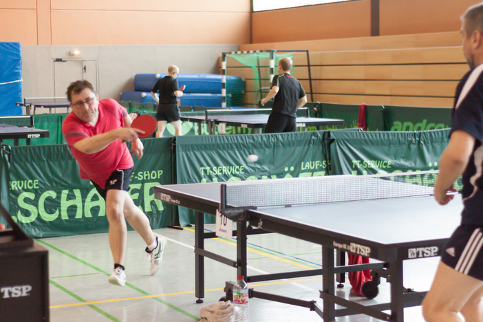 In einer der vier Gruppen des Herrenwettbewerbs 0-1400 standen am Ende alle drei Akteure mit einer 1:1-Bilanz da: Christian Seth (TV Grüningen) unterlag Dirk Jost (TTSG Biebertal) mit 1:3, gewann aber gegen Rainer Jöckel (TSG Wieseck) mit 3:0. Obwohl Jöckel gegen Jost 3:2-Sieger blieb, schied der Wiesecker wegen des schlechteren Satzverhältnisses aus. Während Marcel Koch (FC Rüddingshausen) und der Heuchelheimer Youngster Tom Aeberhard sich im Viertelfinale jeweils mit 3:1 gegen die Grüninger Lukas Schwarz und Seth durchsetzten, hatten Gerrit Thäle (TV Trais-Horloff) und Jost gegen Elias Monden (TSF Heuchelheim) bzw. Stefan Iacob (GW Gießen) schwer zu kämpfen, bevor sie im Halbfinale aufeinandertrafen. Erst danach wurde Thäle seiner Favoritenrolle gerecht und besiegte Jost und den überraschend ins Finale gelangten noch im Schüleralter befindlichen Aeberhard (3:0-Sieg gegen Koch) jeweils deutlich. Im Doppel kam es zu einem überraschenden Duell zwischen Stefan Iacob/Leon Kaus (SV GW Gießen/TV Grüningen) und Lukas Schwarz/Christian Maximilian Seth (TV Grüningen), das die Grüninger im Entscheidungssatz unglücklich mit 10:12 verloren.