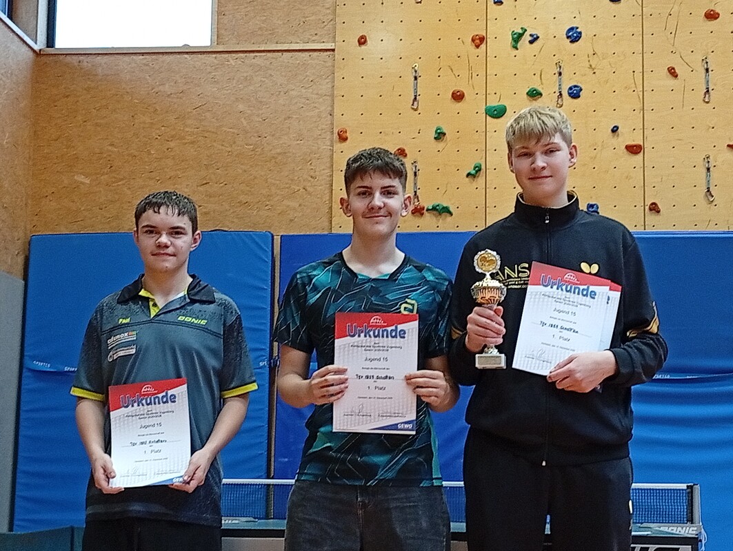 Besonders mitreißend verlief die Endrunde der Jugend 15. Im Halbfinale setzte sich der TTV 1979 Heimertshausen in einer umkämpften Begegnung mit 4:2 gegen die TTG Büßfeld 1974 durch. Parallel dazu lieferte sich der TGV 1859 Schotten mit dem TV Frischborn 1912 ein leidenschaftliches Pokalspiel, das Schotten ebenfalls mit 4:2 für sich entschied.
