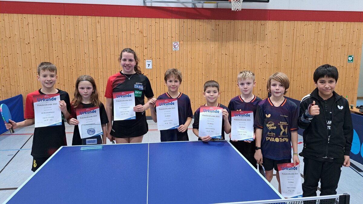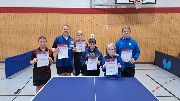 Jugend13/Kreisliga: Der FSV Lumda war nur zu zweit angetreten und gegen den TTC Wißmar chancenlos. Weitaus spannender ging es zwischen dem TV Großen-Buseck und dem SV Ettingshausen zu. Erik Schepp, Schepp/Beitsch und Jannis Beitsch erkämpften nach zwei Stunden Spieldauer den Eintritt ins Finale bei Gegenzählern von Matteo Nikisch und Ole Rau. Noch deutlicher besiegten die Ettingshäuser im Endspiel dann den TTC Wißmar, für den nur Luke Bender gegen Beitsch punkten konnte. Erneut Schepp (2), Schepp/Beitsch und Lea Kremser ließen den SV beim Pokalsieg jubeln.