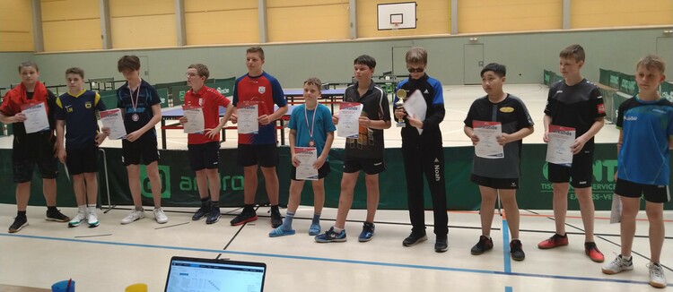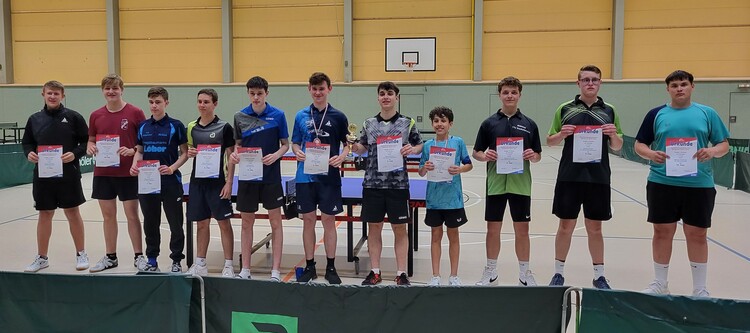 Jungen 15: 1. Noah Laabs (Homberger TS), 2. Jannik Müller (TTC Hofgeismar), 3. Anton Westermann, 4. Jaroslaw Popov (beide Eintracht Baunatal), 5. Angelo Wu (SC Niestetal)