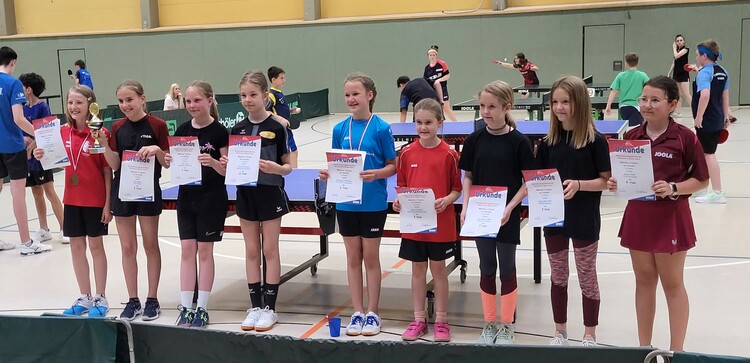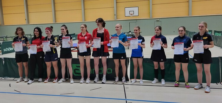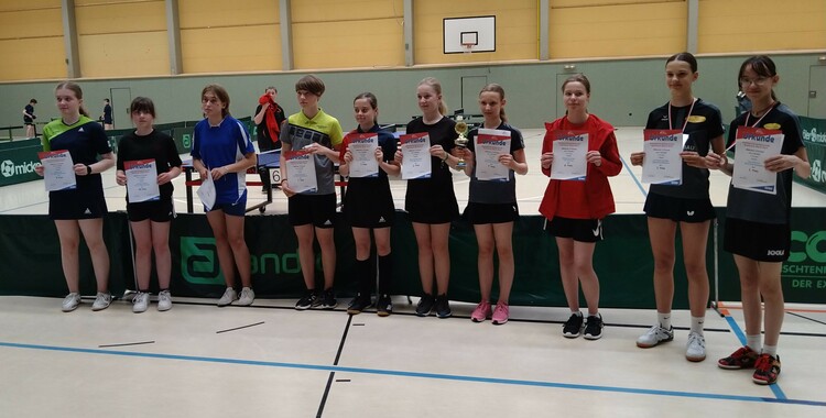 Mädchen 13: 1. Nora Müller (TSV Besse), 2. Charlotte Holzhauer (TTC Lüdersdorf), 3. Lina Sophie Merle (SV RW Leimsfeld), 4. Amira Heller (TV Heringen)