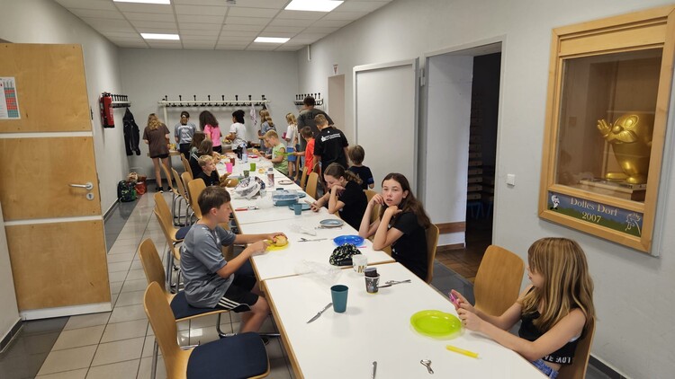 Gegen 16:30 Uhr trafen sich dann alle Kinder in der Halle und bezogen ihr Quartier für die Nacht. Im Anschluss daran gab es vor der Halle Bratwürstchen zum Abendessen.