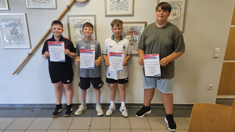 Nachdem aufräumen der Halle gab es zur Stärkung am Mittag Pizza. Beim gemeinsamem Essen wurde als Highlight noch die Jungen Mannschaft für Ihre Meisterschaft in der abgelaufenen Saison geehrt.