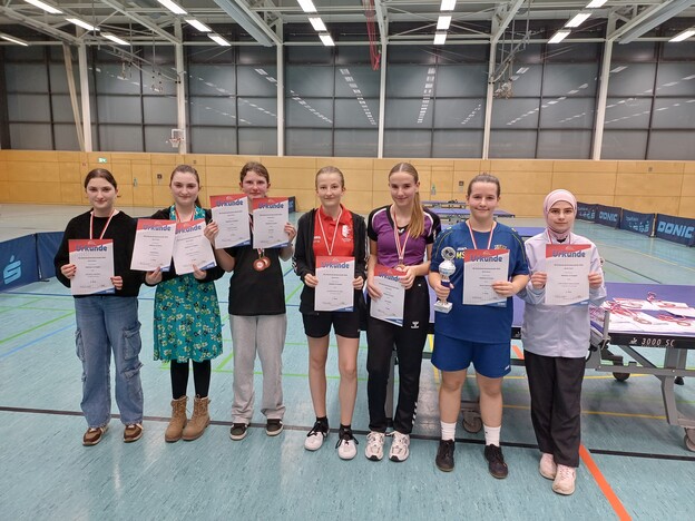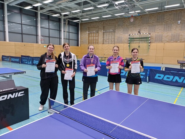 Mädchen 19: 1. Tabea Bogner, 2. Linn-Kara Sendke (beide SC Niestetal), 3. Frida-Marie Reum (TSG Fürstenhagen), 4. Kati Acker (TTV Angelburg), 9. Maren Spielvogel (TTC Anzefahr) und Madita Weidemüller (TSV Niederweimar), 13. Burbuqe Gjukai, 19. Margarita Lupanova (beide TTV Stadtallendorf) und Hanen Shwihneh (TV Cölbe)