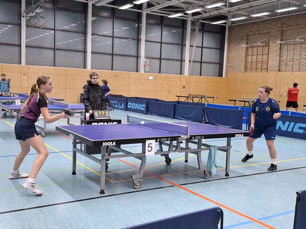 Die heimischen Nachwuchsasse steigerten sich nach den erfolgreichen Ergebnissen im vergangenen Jahr nochmals und standen neben den beiden Bezirksmeistertiteln noch elfmal auf dem Treppchen. Für das herausragende Ergebnis zeichnete Maren Spielvogel (TTC Anzefahr) verantwortlich. Nach dem Sieg bei der Bezirksrangliste im Sommer wurde sie ihrer Favoritenrolle gerecht und gewann in ihrem ersten Jahr bei den 15-Jährigen direkt das Double. Ohne Satzverlust zog die Anzefahrerin in die Endrunde ein, in der es im Viertelfinale aber direkt starke Nerven benötigte. Nach einer 2:0-Führung gegen die M13-Bezirksmeisterin Juna Mänz (OSC Vellmar) verpasste es Spielvogel den Sack zu zumachen und kassierte den Ausgleich (10:12, 9:11). Im Entscheidungssatz besann sich die "Blau-Gelbe" dann wieder auf ihre Stärke und zog klar mit 11:6 ins Halbfinale ein. Dort hatte sie gegen ihre letzjährige Doppelpartnerin Pia Otto (TSV Sielen) keine Probleme. Ganz ohne Satzverlust zog Nora Müller (TSV Besse) ins Endspiel ein, in dem sich beide Spielerinnen einen offenen Schlagabtausch lieferten. Spielvogel konterte das 8:11 im ersten Satz mit zwei engen Satzerfolgen (11:9, 12:10), bewies auch nach verlorenem vierten Satz ihre mentale Stärke und gewann mit 11:7 ihren größten Erfolg. Im Doppel hatte dagegen Müller zusammen mit Lina Sophie Merle (SV Leimsfeld) deutlich die Nase vorn. Maren Spielvogel und die Cölberin Hanen Shwihneh, die im Einzel nur knapp das Halbfinale verpasste (2:3 gegen Otto) unterlagen glatt in drei Sätzen.