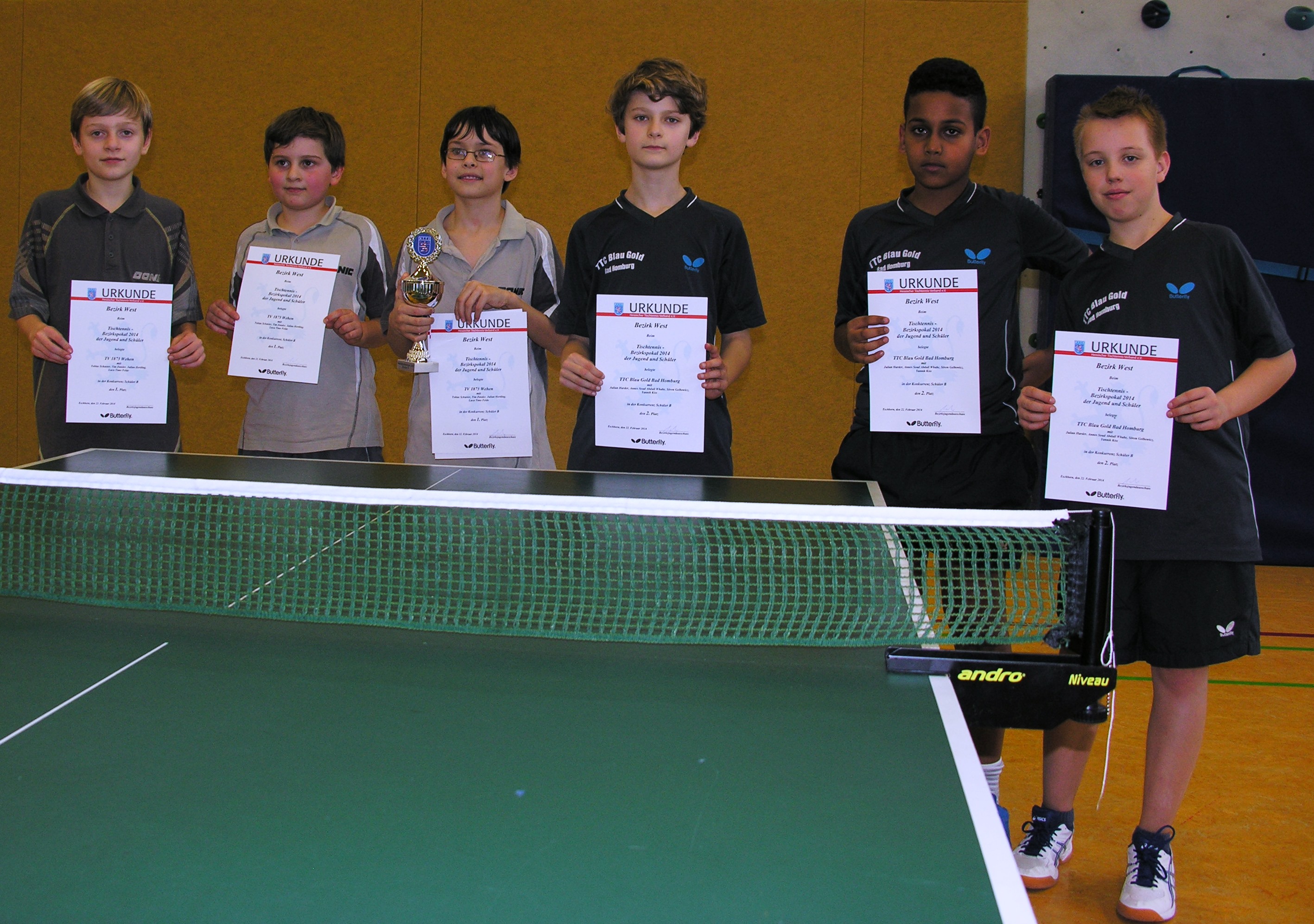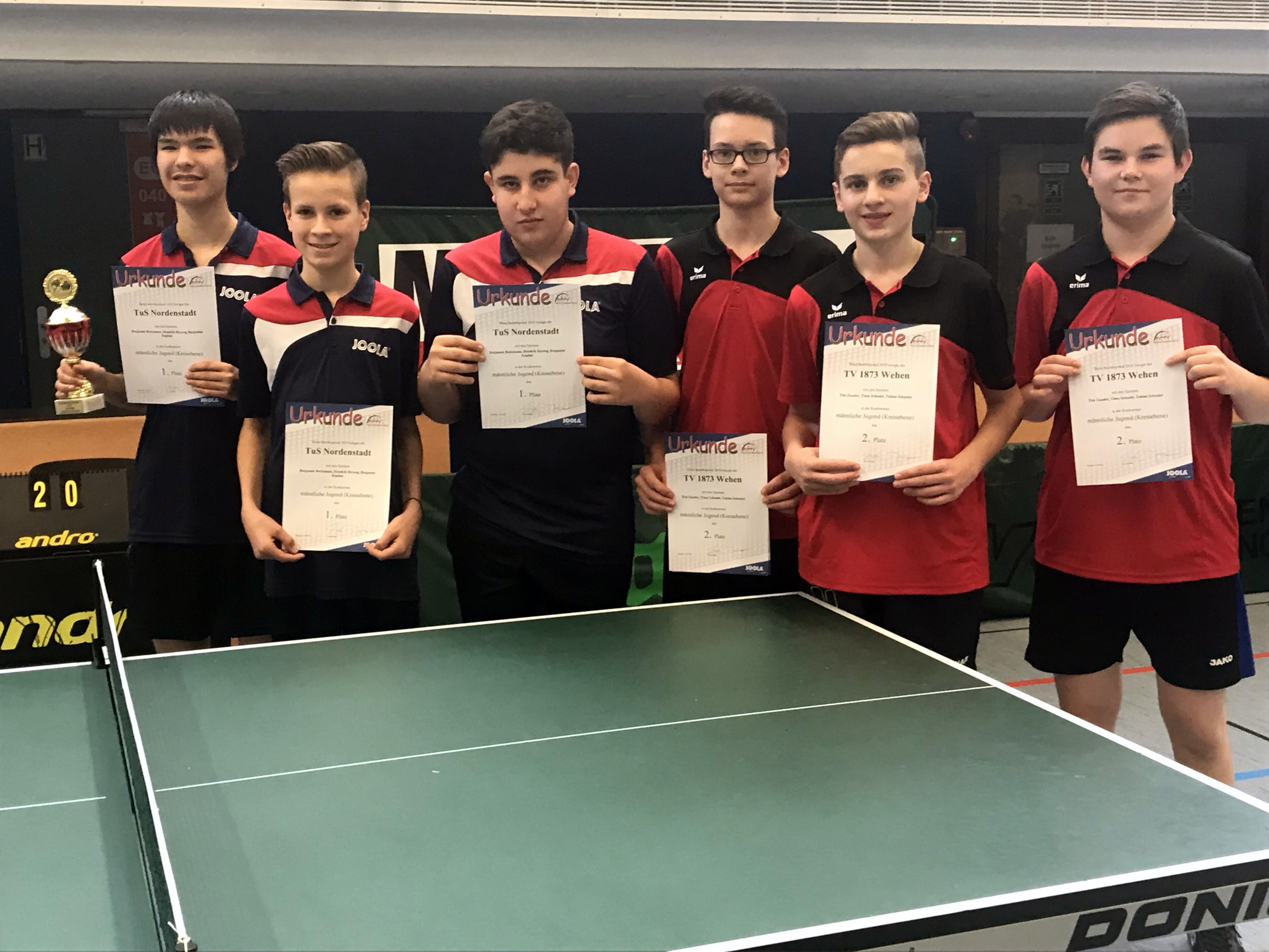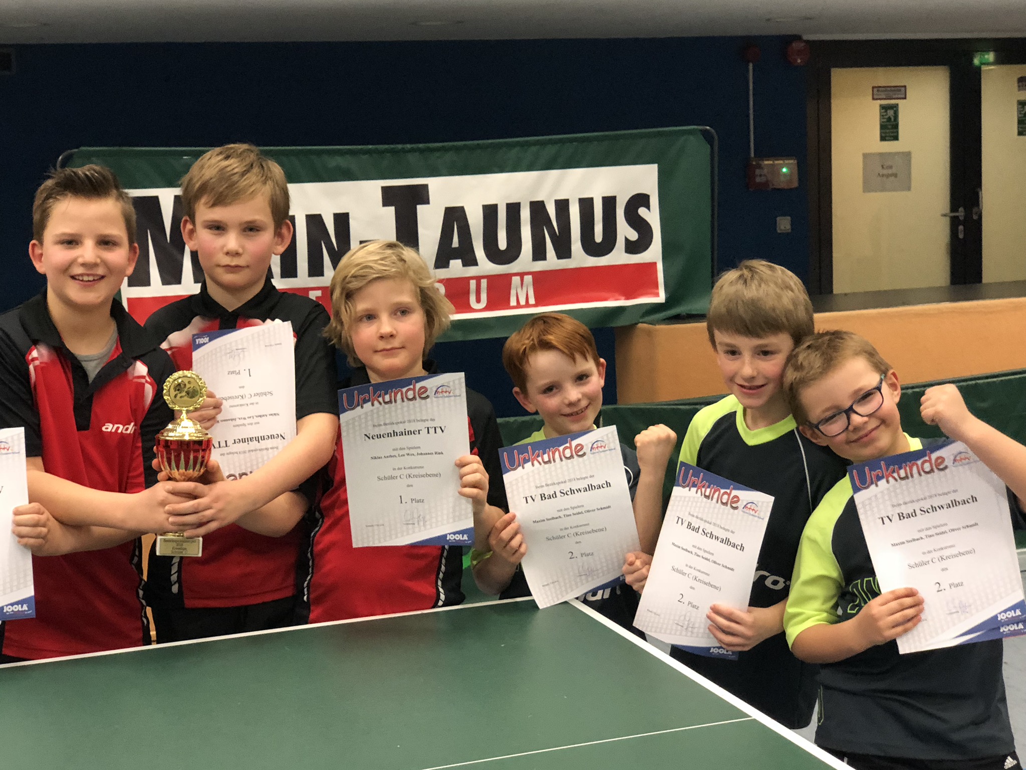 Bezirkspokalsieger 2018 Schüler C Neuenhainer TTV (links) - 2. Platz TV Bad Schwalbach (rechts)