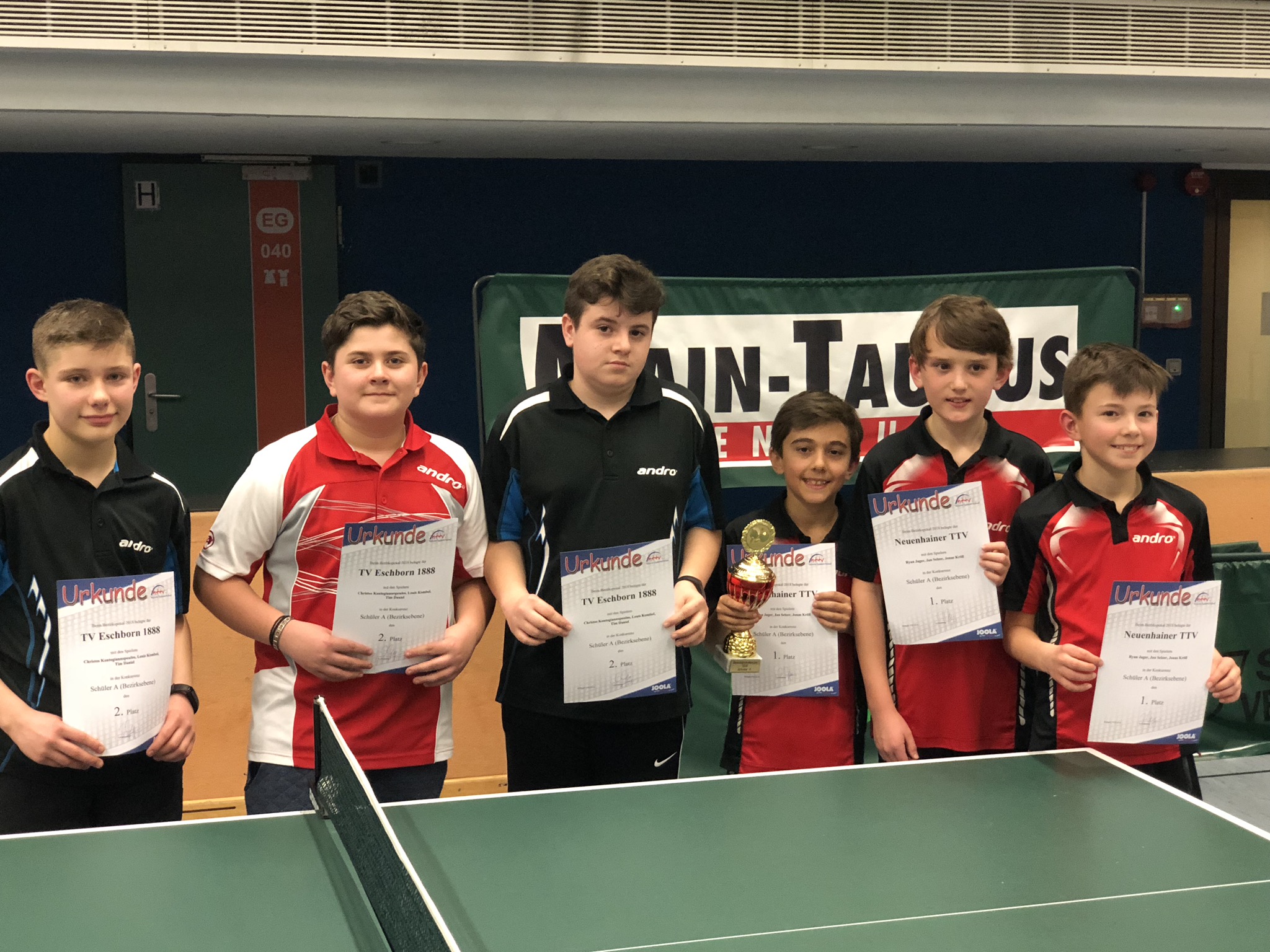 Bezirkspokalsieger 2018 Schüler A (bezirksgebunden) Neuenhainer TTV (rechts) - 2. Platz TV Eschborn (links)