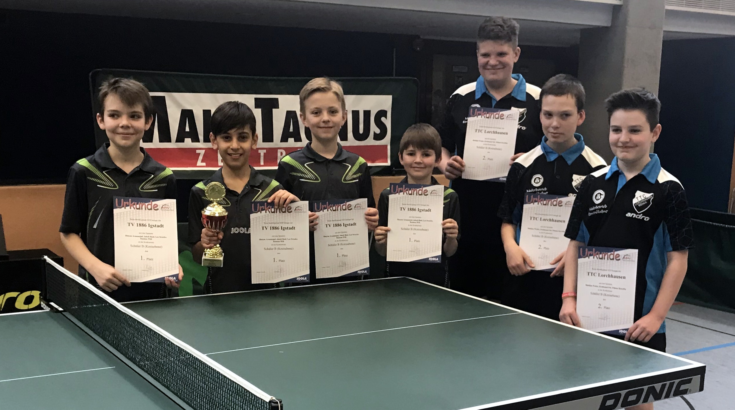 Bezirkspokalsieger 2018 Schüler B TV Igstadt (links) - 2. Platz TTC Lorchhausen (rrechts)