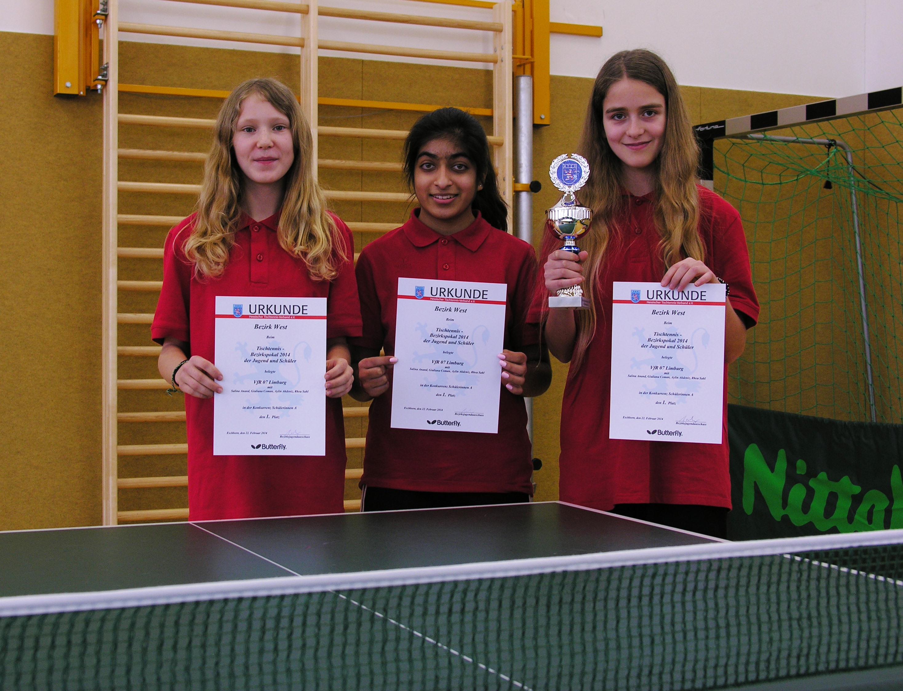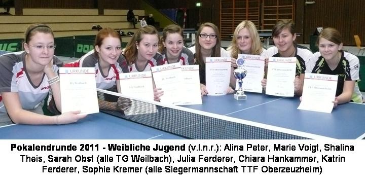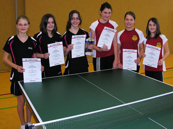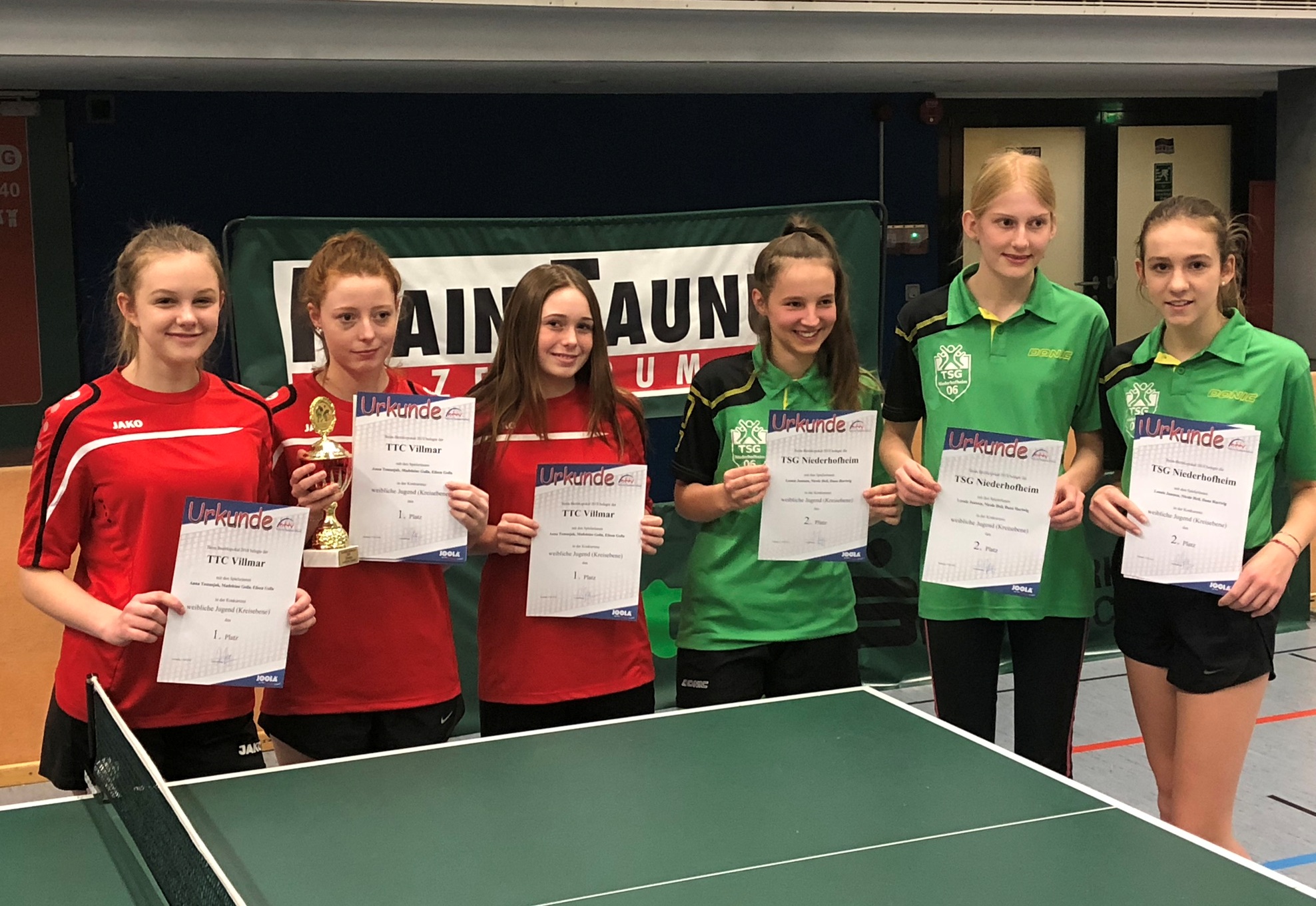 Bezirkspokalsieger 2018 weibl. Jugend (kreisgebunden) TTC Villmar (links) - 2. Platz TSG Niederhofheim (rechts)