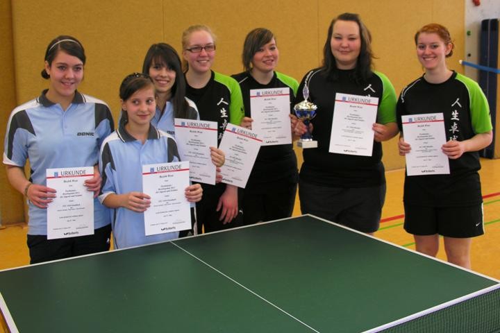 Bezirkspokalsieger 2018 Schülerinnen B TG Nauros (rechts) - 2. Platz TTC Wilhelmsdorf (links)