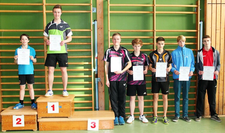 Endrangliste (8): 1. Michael Rother (TTF Frohnhausen) 21:3/7:0, 2. Gerrit Thielmann (TV Braunfels) 20:6/6:1, 3. Kevin Hartmann (TTC Großaltenstädten) 13:12/3:4, 4. Lukas Wörsdorfer (TTC Merkenbach) 12:14/3:4, 5. Sascha Eisfeld (TTC Merkenbach) 13:16/3:4, 6. Alex Bill (TSV Albshausen) 11:17/2:5, 7. Tim Reichenauer (TTC Merkenbach) 9:18/2:5, 8. Alexander Gräf (TTC Herbornseelbach) 6:19/2:5.