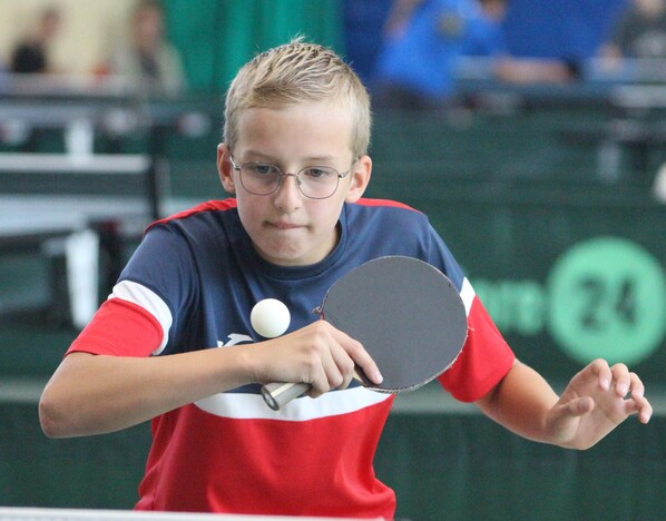 In der Jugend 13 erreichte der Frohnhäuser Collin Alexander Weis zweimal Rang fünf. In seiner Gruppe hielt sich der TTF-ler schadlos, als er diese als Gruppenerster mit 3:0-Spielen und 9:0-Sätzen beendete. Ein äußerst knappes Ergebnis gab es im ersten Spiel der Hauptrunde. Gegen Lino Carlier (TSG Sulzbach) ging es im ersten Satz bis 22:20. Etwas deutlicher die Niederlagen in Durchgang zwei und drei, die 9:11 und 8:11 endeten. Nach 15:13 und 12:10 in den beiden folgenden Durchgängen war der Akteur aus dem Dillenburger Stadtteil im Viertelfinale. Hier war leider durch ein 1:3 Ende. Mit ebenfalls Rang fünf kam Collin im Doppel nachhause. Nach einem 3:2-Erfolg im ersten Spiel, ging es gegen die späteren Sieger Lutz Watzlaw/Cesare Alessi (TTC Elz/SG Anspach), die sich als zu stark erwiesen.