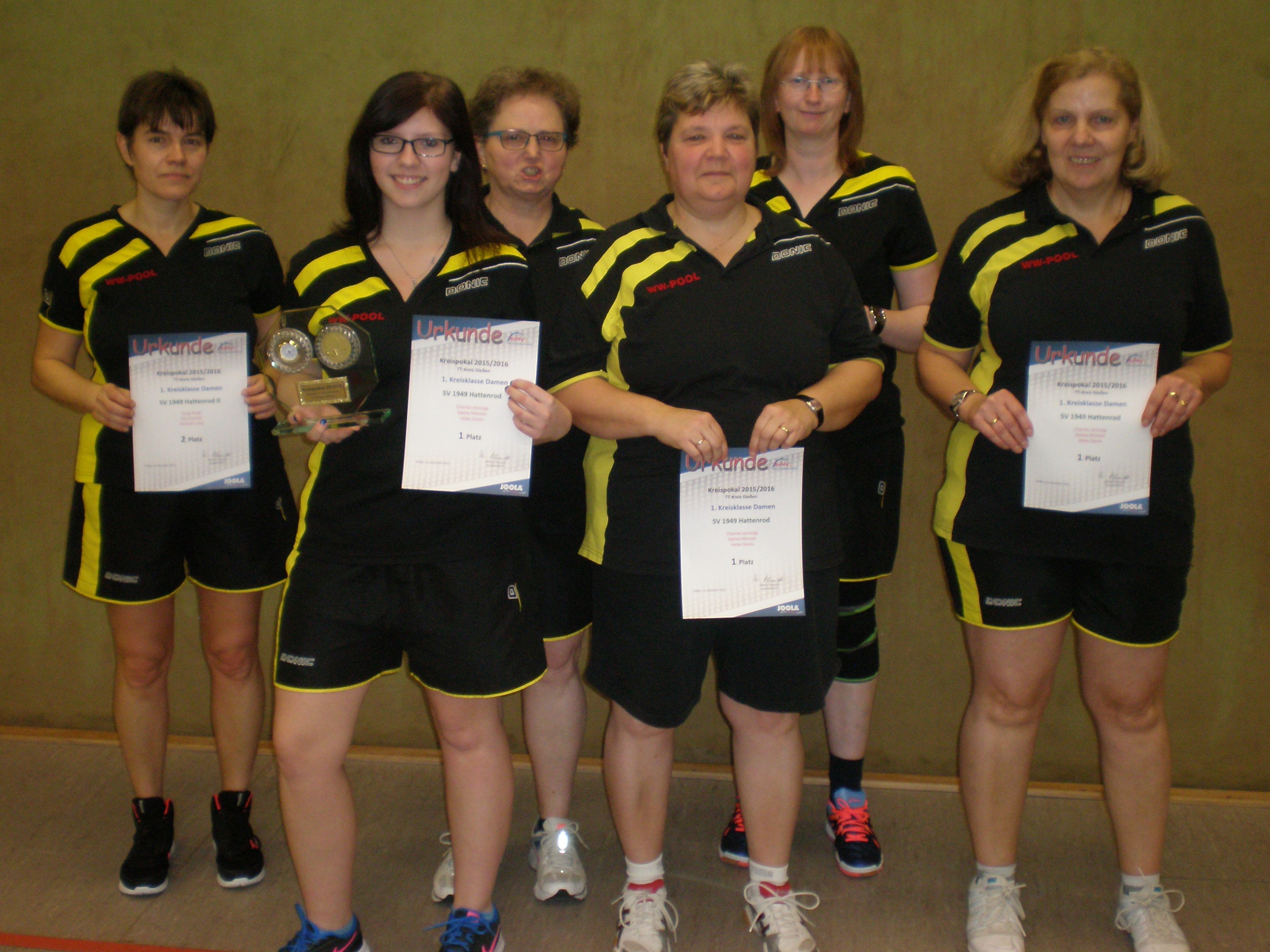 1. Kreisklasse Damen: Sieger SV Hattenrod (vordere Reihe), Zweiter SV Hattenrod II (hintere Reihe). (Foto: Stefan Fritsche)