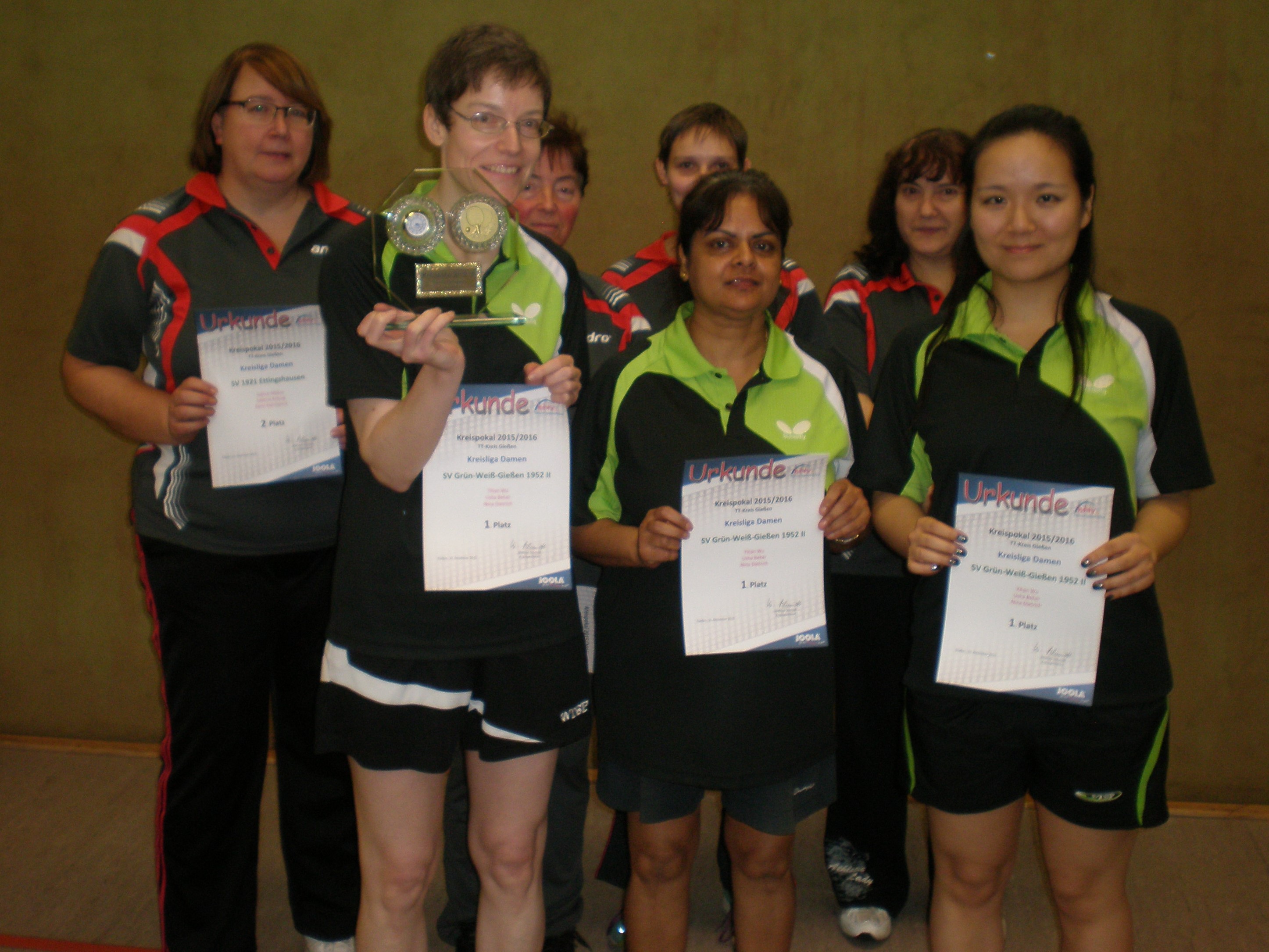 Kreisliga Damen: Sieger Grün-Weiß Gießen II (vordere Reihe), Zweiter SV Ettingshausen (hintere Reihe). (Foto: Stefan Fritsche)