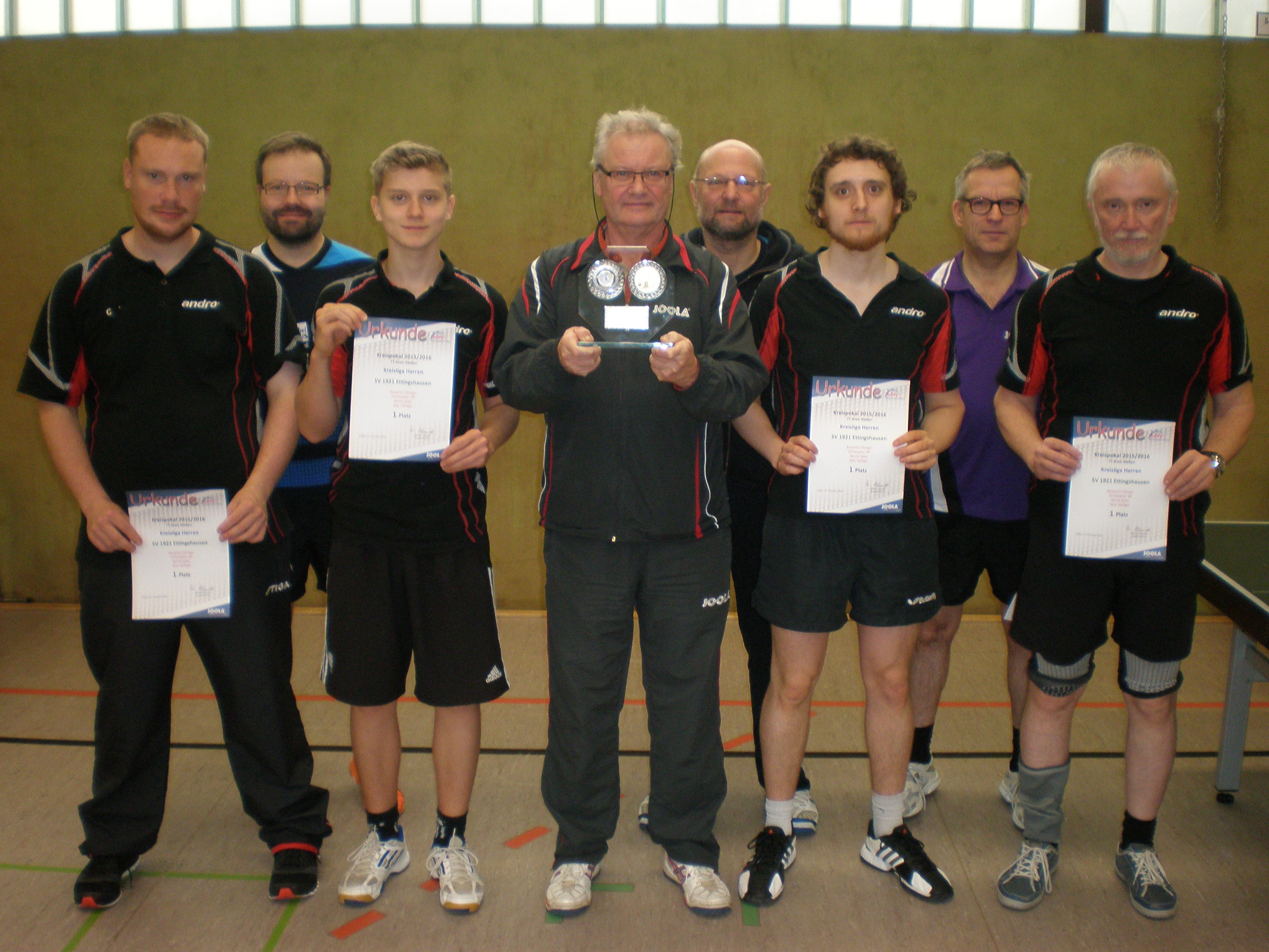 Kreisliga Herren: Sieger SV Ettingshausen (vordere Reihe), Zweiter TTC Wißmar II (hintere Reihe). (Foto: Stefan Fritsche)