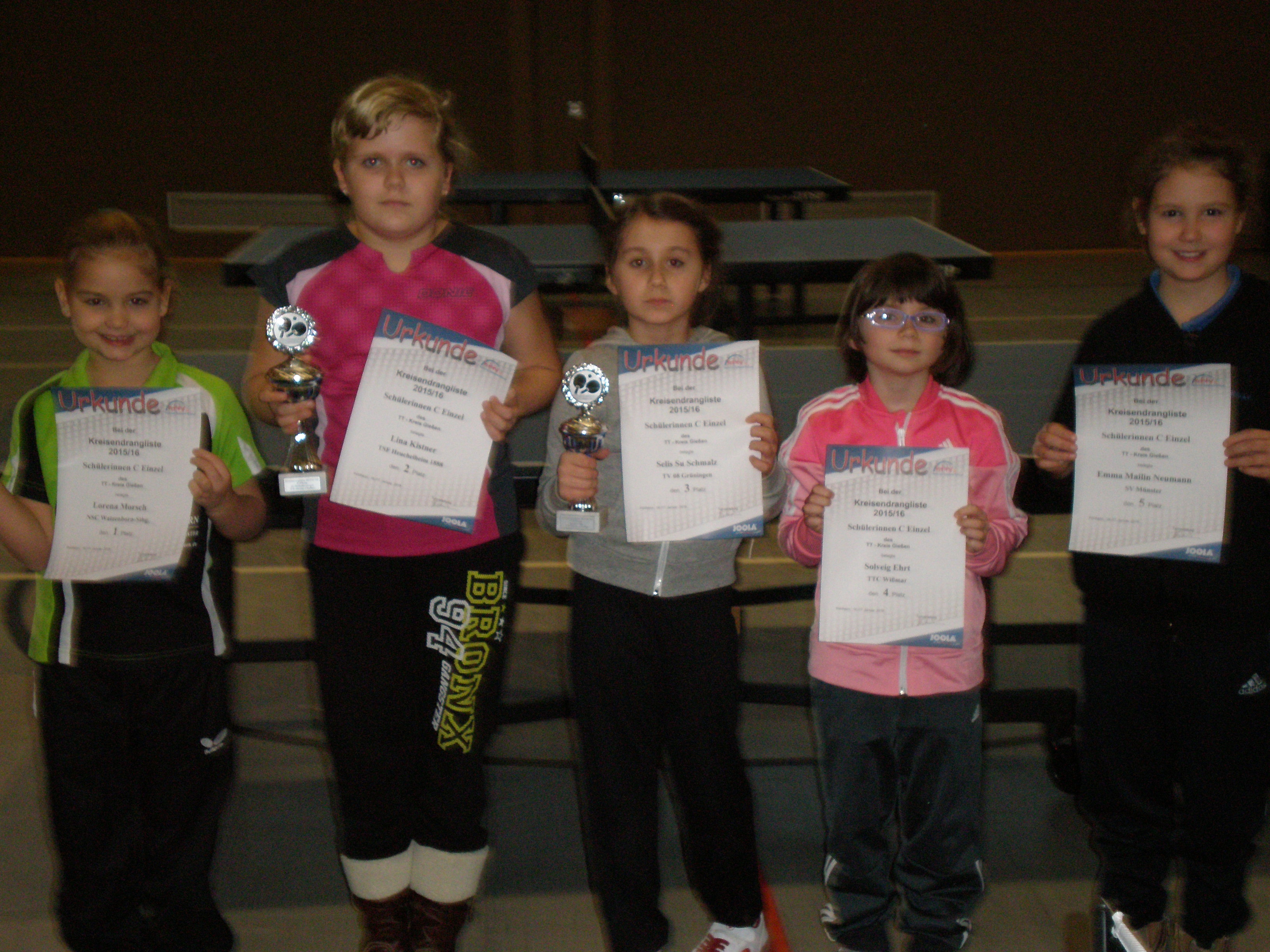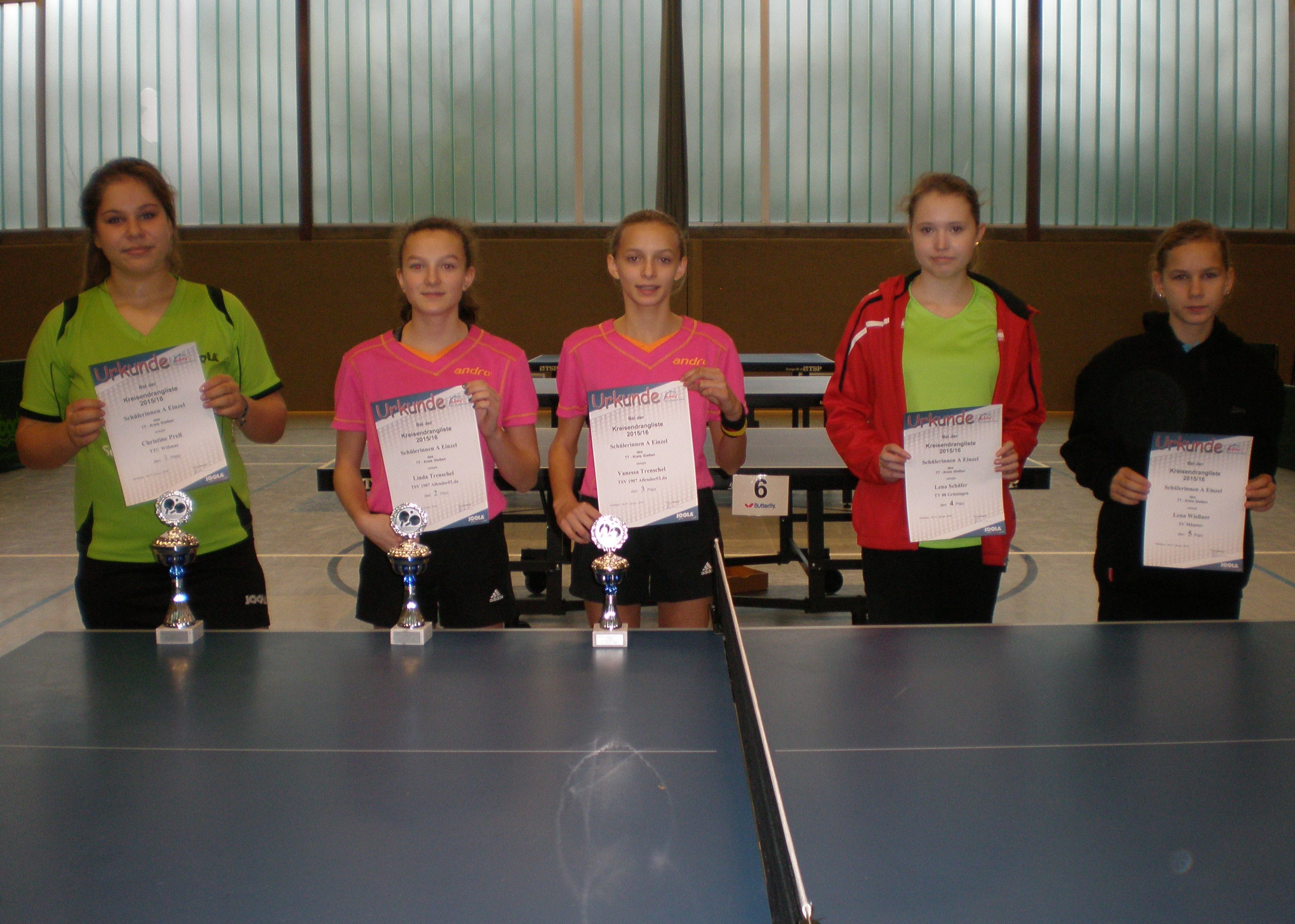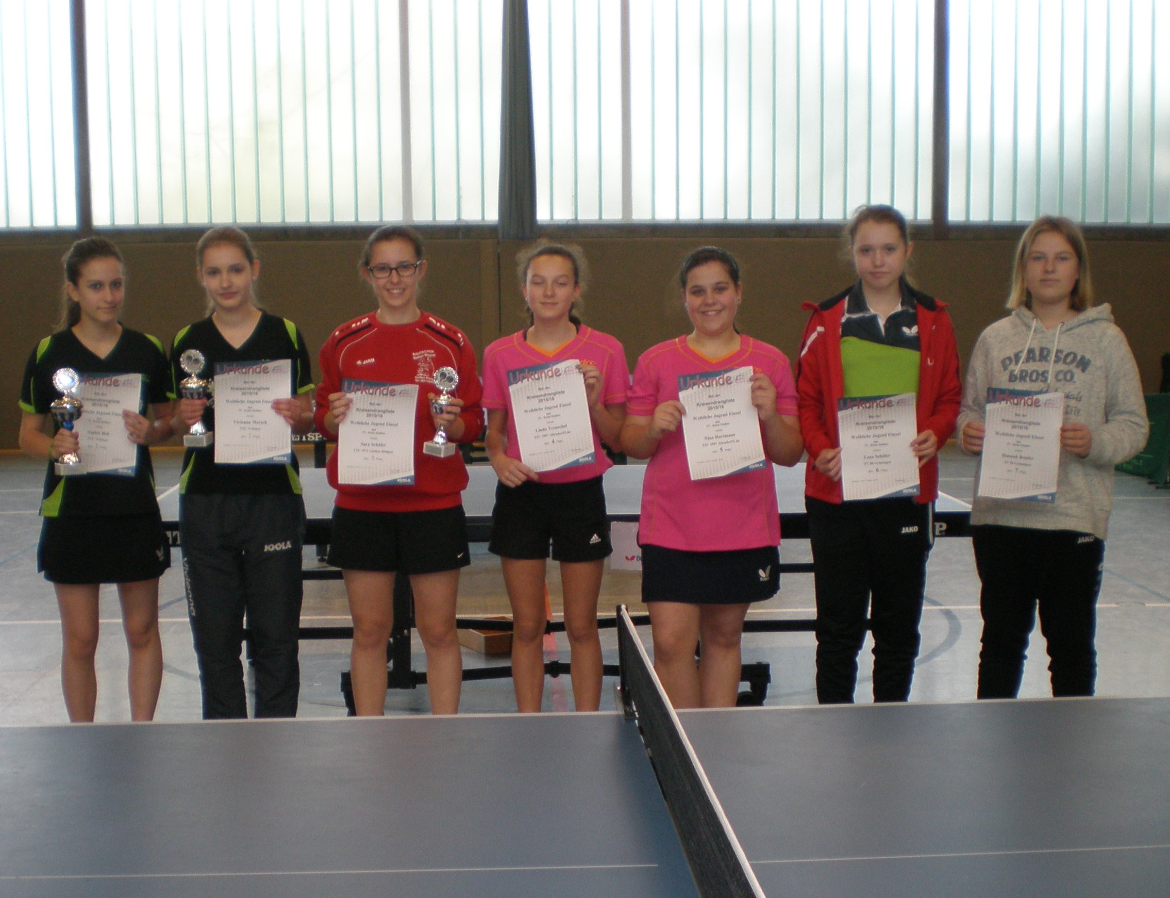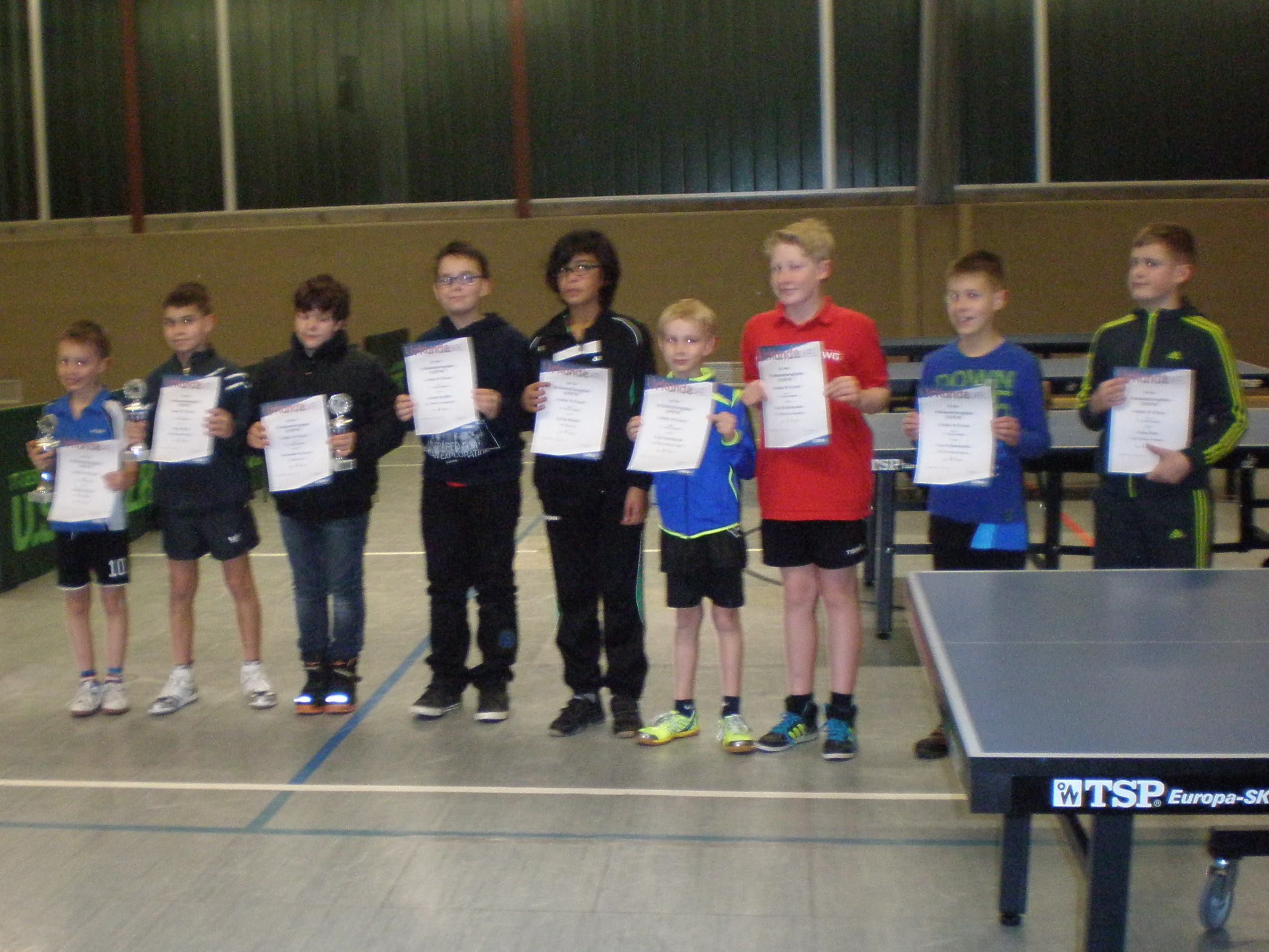 Schüler B Einzel (v.l.): 1. Noël Kreiling (TTC Wißmar), 2. Mark Weiß (TSG Wieseck), 3. Alexander Krastev (Gießener SV), 4. Adrian Spiller (TSV Lützellinden), 5. Kevin Rohde (TSV Beuern), 6. Tom Aeberhard (TSF Heuchelheim), 7. Tim Weidemann (TSV Lützellinden), 8. Florian Lange (NSC W.-Steinberg), 9. Lars Goldschmidt (TSG Wieseck).