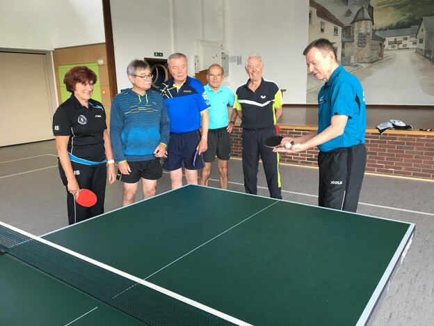 Der Präsident des Hessischen Tischtennis-Verbandes Andreas Hain regte an, für die Senioren ein Angebot zu erarbeiten. Der Seniorenbeauftragte im Lahn Dillkreis griff die Anregung auf. Nach einigen Gesprächen wurde ein Seniorentraining ins Leben gerufen und in Philippstein eine geeignete Halle gefunden, die vormittags zur Verfügung steht. Es ist im Moment noch eine kleine Gruppe, die sich jeden Donnerstag zum gemeinsamen Training einfindet. „Ich hoffe, es wird noch der eine oder andere dazu kommen“, stellte Axel Michel heraus. Das Training liegt derzeit in den Händen von Peter Nowak (SG 58 Dillenburg). „Bei Seniorenturnieren treffen die Spieler immer mehr auf Kontrahenten mit Material. Auch stellen viele ihre Beläge auf lange Noppen um. Ich will in diesem Bereich behilflich sein“, ist erst einmal das vorrangige Ziel von Peter Nowak.