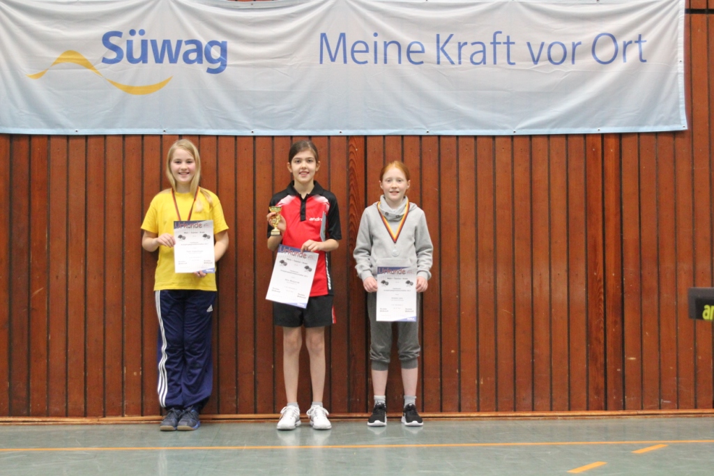 Bei den Mädchen mussten die Altersklassen 1 und 4 ausfallen, da keine Spielerinnen am Start waren. In der Altersklasse 3 gewann Katharina Reusswig (TV Wallau) als einzige Teilnehmerin. Sie durfte außer Konkurrenz bei den Jungen mitspielen. Immerhin drei Spielerinnen gingen in der Altersklasse 2 an den Start. Es setzte sich erwartungsgemäß Sara Modjarrab vom ausrichtenden Neuenhainer TTV vor Antonia Lenz und Paula Koppenhagen (beide Tura Niederhöchstadt) durch.