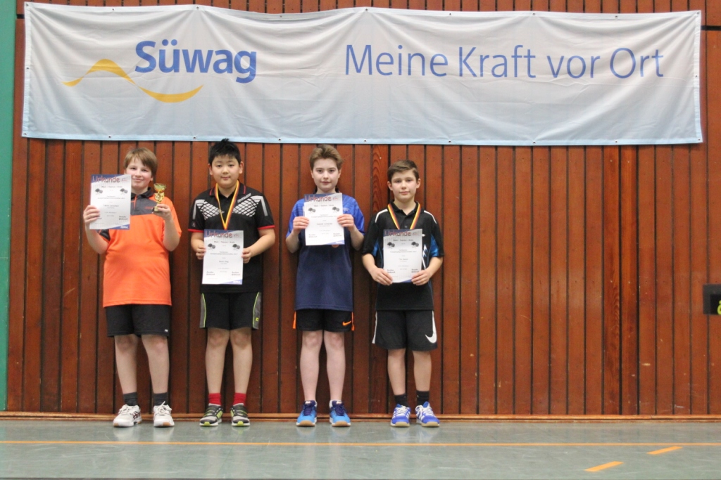 In der erstmals ausgetragenen Altersklasse 4 (Jahrgänge 2008 und jünger) konnten fünf Nachwuchsspieler begrüßt werden. In einer Gruppe Jeder-gegen-Jeden wurde der Sieger ermittelt. Dieser hieß letztlich Julian Rehm (SG Kelkheim), der sich knapp vor Yago Clemens (Neuenhainer TTV) durchsetzte. Dritter wurde Robin Daniel (TV Eschborn) vor seinem Vereinskameraden Yuno Ju und Hannes Mähringer-Kunz (TV Wallau).