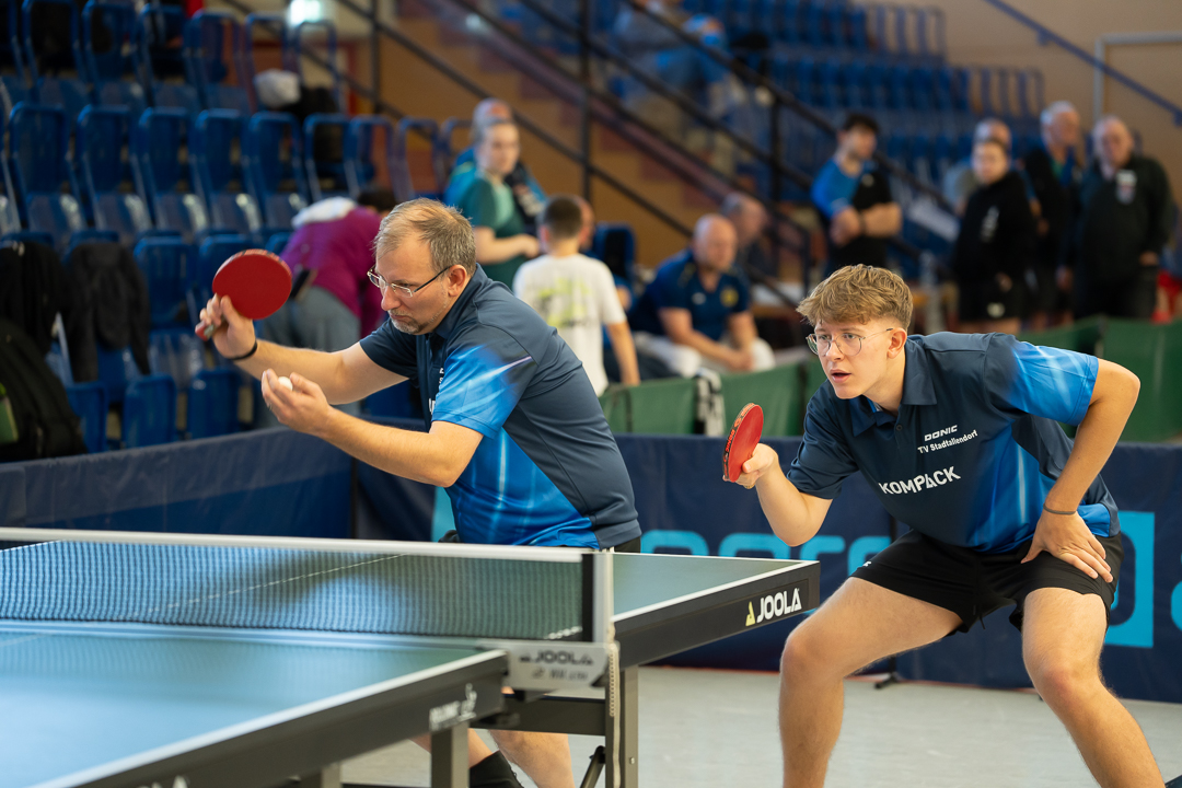 Hartmann trat bei den Seniorinnen 40 in einem Sechserfeld an und musste sich in der zweiten Runde lediglich der früheren Watzenborner Bundesligaspielerin Christine Engel (geb. Apel) knapp im fünften Satz geschlagen geben. "Ich bin gut gegen Christine reingekommen und konnte die ersten beiden Sätze gewinnen, danach wurde sie aber immer besser und am Ende war es ein offener Schlagabtausch", resümierte Hartmann, die an diesem Tag in insgesamt drei Konkurrenzen zwölf Matches bestritt. "Das Finale im Mixed begann um 21:30 Uhr, entsprechend platt war ich danach." Das hinderte die Hinterländerin aber nicht daran, einen Tag später im Bezirksoberligaspiel ihres TTV Angelburg gegen den TTC Ginseldorf ebenfalls anzutreten und mit zwei Einzel- und einem Doppelerfolg den maßgeblichen Anteil am 6:4-Sieg beizusteuern. "Da war ich dann eben so richtig eingespielt", scherzte Hartmann, die sich auch mit ihrem zweiten Platz für die Deutschen Meisterschaften vom 4.-7. Juni in Erfurt qualifizierte. Im Doppel an der Seite von Engel gab Hartmann keinen Satz ab und auch mit Mixedpartner Andre Tamoschus (TTC Hausen) war Hartmann nicht zu schlagen.