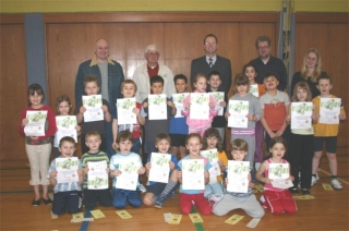 Und dabei ist das TGS-Team erst in der ersten Klasse unterwegs, um die Teilnahme-Urkunden der Schnuppertage zu verteilen. Eine Woche lang zeigten TGS-TT-Trainer Thomas Marschall und TT-Abteilungsleiter Gregor Bauer den Kleinen, was Tischtennis überhaupt ist. In der TGS-Halle standen die Tischtennisplatten bereit und auch Schläger und Bälle brachten Marschall und Bauer für die Neulinge mit. Rund 300 Kinder konnten sie so in die Welt des Sports einführen. Je nach Altersstufe bekamen die jungen Teilnehmer Übungen gezeigt. Später durfte sich der Nachwuchs dann alleine an den Tischen versuchen. Konzentriert und den Blick stur auf den Ball gerichtet ist der Umgang mit Schläger und Ball gar nicht so einfach, stellten manche Teilnehmer fest. Für eine bessere Koordination seien die einzelnen Übungen gedacht, sagt Gregor Bauer. Zwar sei diese mit zunehmendem Alter ausgeprägter, doch Computerspiele und Fernseher würden diese Fähigkeit zunehmend verkümmern lassen. Nach dem Tischtennis-Test haben viele Kinder den Spaß für den Sport entdeckt und sich gleich zur dazugehörigen Schul-AG angemeldet. Die Nachfrage ist so groß, dass die zwei Kurse mit je mehr als zehn Kindern, die Donnerstagnachmittag stattfinden, schon ausgebucht sind. Jetzt muss beim Verein die Frage geklärt werden, ob noch eine dritte AG möglich sei, sagt Bauer. Auch andere Sportarten hielten dem Test in der Waldschule in Schnupperaktionen schon Stand. So standen schon Rugby und Tennis auf dem Stundenplan. Die Kinder lernen die verschiedenen Sportrichtungen kennen und die Obertshausener Vereine können sie vorstellen, sagt Schulleiter Günter Kaspar. Schule und Verein zusammenbringen heißt das Motto an der Waldschule: So können Ganztagskinder trotz Schule, in den Verein nebenan gehen, sagt Kaspar. Davon möchte auch die TGS-Tischtennisabteilung profitieren, denn Mund-zu-Mund-Reklame reicht nicht. Die TGS-TT-Abteilung plant auf lange Sicht ihr großes Ziel ist die enge Kooperation mit der Waldschule. So hoffen die Verantwortlichen, in jedem Halbjahr mindestens eine Schul-AG anbieten zu können und den Nachwuchs für den Sport zu begeistern und ihn so vielleicht auch ins TGS-Vereinsleben zu bringen.