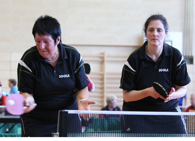 Jetzt ging’s in die Finalspiele und die Spiele um Platz 3. Die Verlierer der Halbfinale in den Damenklassen Ü40 und Ü50, TTC Langen und TTC Salmünster, konnten ihre Spiele um Platz 3 leider nicht gewinnen. Der TTC Langen verlor das Spiel gegen TuS Xanten mit 3:1, wobei zwei Spiele knapp mit 2:3 verloren gingen. TTC Salmünster unterlag im Spiel gegen die Sportfreunde Friedrichshafen mit 0:3.