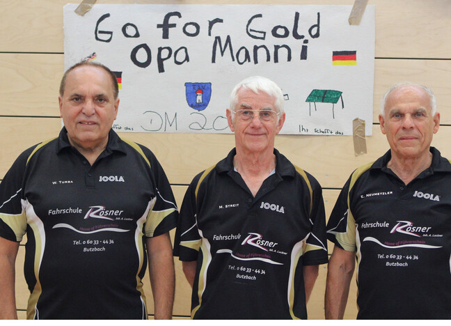 In der Klasse Senioren 60 trat TG Unterliederbach mit Dieter Holzapfel, Bernd Möhring, Nobert Küster und Manfred Thoemes im Endspiel gegen die Abwehrstrategen Rainer Knappek und Heinz-Peter Louis mit Peter Kelb vom Oberalster VFW an. Nach dem knappen Eröffnungssieg von Dieter Holzapfel gegen Kelb hätte Bernd Möhring im zweiten Spiel für einen beruhigenden 2:0-Vorsprung sorgen können – doch leider musste er sich mit einem knappen 1:3 geschlagen geben. Da auch die folgenden Spiele (Norbert Küster gegen Rainer Knappek, Dieter Holzapfel/Bern Möhring gegen Louis/Knappek und Dieter Holzapfel gegen Louis) mit jeweils 0:3 verloren gingen, konnten die Unterliederbacher den Spielern vom Oberalster VfW nur noch zum Sieg gratulieren. Dennoch ist der 2. Platz vom Quartett der TG Unterliederbach ebenfalls eine Superleistung.