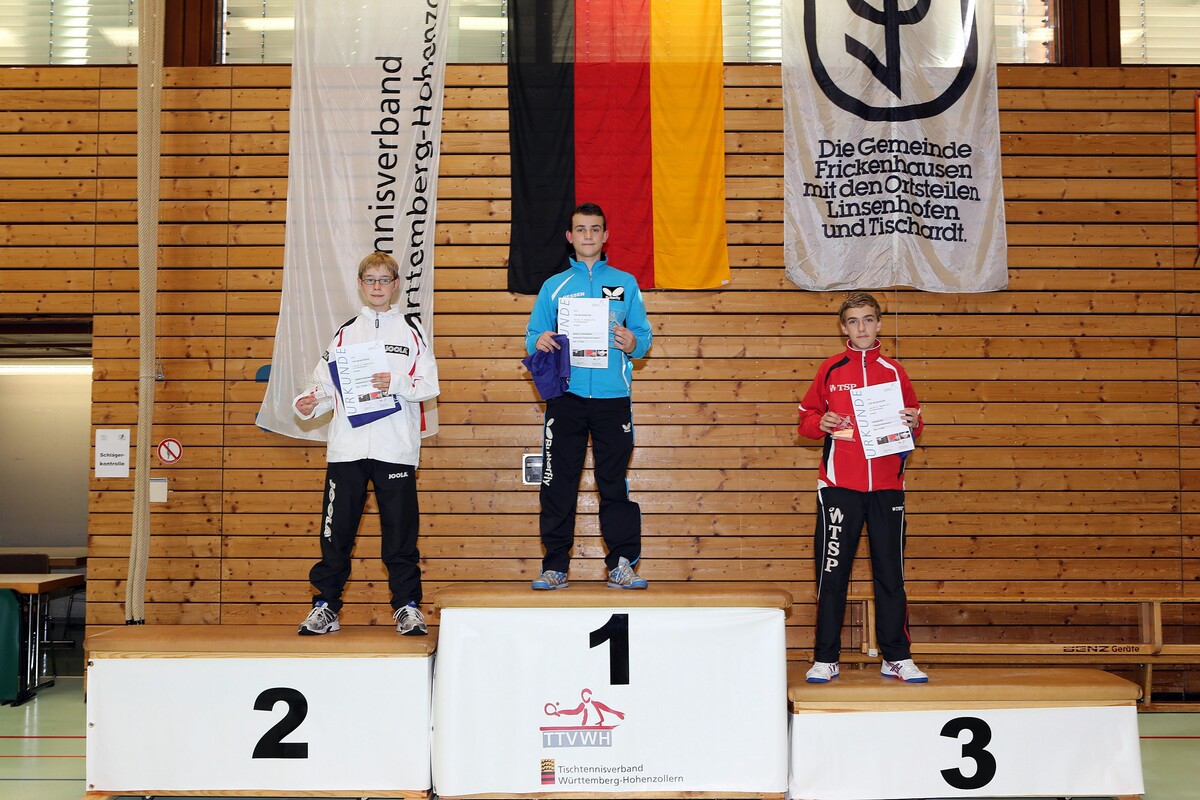 In einem mitreißenden Finale nach 2:1-Satzführung noch von Marco Grohmann auf den zweiten Platz verwiesen wurde Gerrit Engemann (DJK Germania Kamen) vom westdeutschen Verband, dahinter landeten mit Tom Mayer (TSG Heilbronn) und Alexander Gerhold (TTV Grün-Weiß Ettlingen zwei Spieler aus dem Verband Baden-Württemberg und Fünfter wurde Nils Hohmeier (TuS Celle/Niedersachsen).