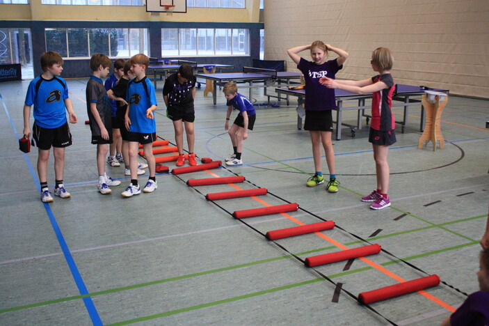 Alle erschienenen Talente gaben ihr Bestes und versuchten immer wieder knifflige Trainingsaufgaben zu meistern. Es wurde fleißig an den Schlag- und Beinarbeitstechniken gefeilt, neue Aufschläge ausprobiert und hoch koordinative Bewegungsabläufe im Aufwärmbereich ausprobiert. Weitere interessante Inhalte der absolvierten Trainingseinheiten waren die schnellen Laufwege von der Rückhand- in die Vorhandecke, die Eröffnungen auf Unterschnitt und das Nachspielen auf den gegnerischen Blockball. Bei den Tischtennisübungen wurden stets hohe Wiederholungszahlen aber auch immer wieder Punktgewinne verlangt.
