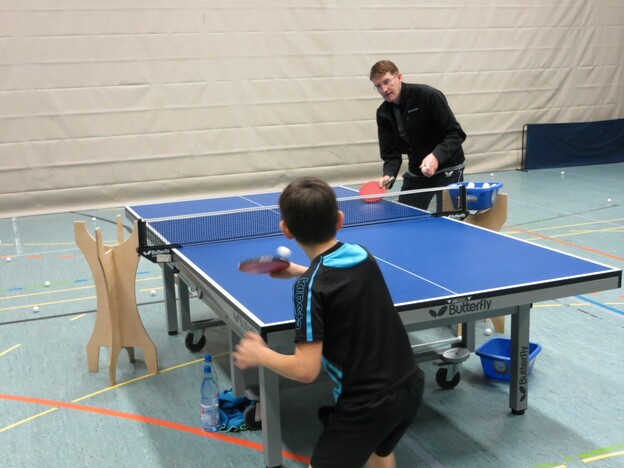Die Spielerinnen und Spieler der beiden Trainingsgruppen sind sehr motiviert, diszipliniert und leistungsorientiert, sodass das Training sehr effizient abläuft. Das Trainerteam ist mir sehr offen begegnet, hat jede meiner (vielen) Fragen ausführlich beantwortet und mich auf wichtige Dinge aufmerksam gemacht. Ich konnte viel zu den Themen Trainingsaufbau, Aufschläge, Technik, Übungen und Balleimer lernen und hätte sicherlich noch viele Stunden weiterlernen können. Zum Beispiel hat mich überrascht, dass das Aufschlagtraining einen solchen Stellenwert hat, denn am Anfang der Einheit werden diese für gut ein Fünftel der Gesamttrainingszeit (30 min) geübt. Außerdem habe ich selbst eine Trainingseinheit in Balleimertraining erhalten, in der ein „armer“ Schüler als Versuchskaninchen herhalten musste.