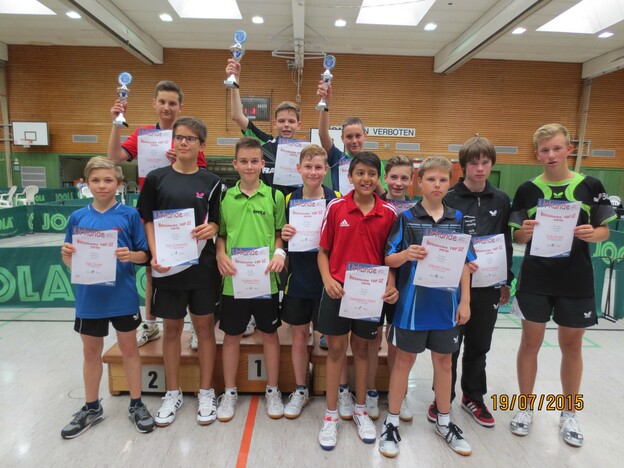 - Gruppe 2: 1. Leon Graf 18:2/6:0, 2. Fabian Reimann (beide SC Niestetal) 17:8/5:1, 3. Tim Kieselbach (TTV Gräfen-,.Schneppenhausen-Weiterstadt) 13:7/4:2, 4. Timon Bischofs (VfR Wiesbaden) 11:11/3:3, 5. Justin Uong (TTC Florstadt) 6:13/2:4, 6. Amir Ben-Hazaz (TTC RW Biebrich) 5:17/1:5, 7. Jan Heuser (TG Langenselbold) 6:18/0:6.