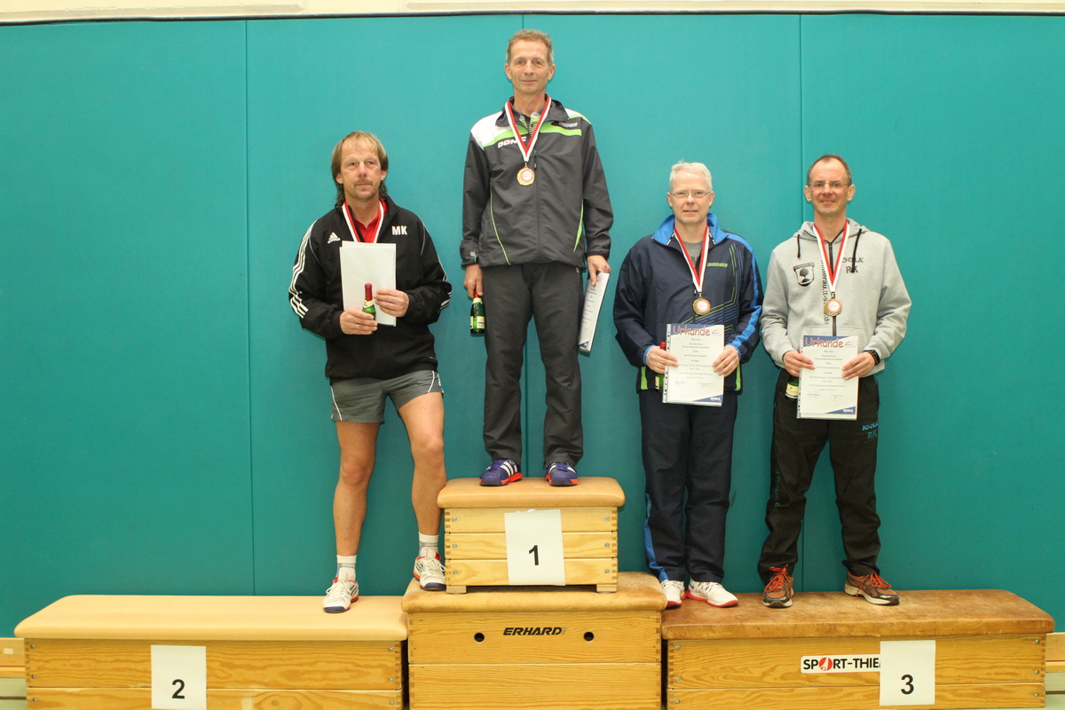 Bei den Senioren 50 traten, trotz einiger Absagen im Vorfeld, noch 23 Spieler in 6 Gruppen an um nach dem Spielsystem jeder gegen jeden die Teilnehmer der KO-Runde zu ermitteln. Außer in den Gruppen 5 und 6 haben sich jeweils die topgesetzten Spieler als Gruppenerster durchgesetzt; und die an Position zwei gesetzten haben sich in diesen beiden Gruppen als Gruppenersten qualifiziert. In hart umkämpften und auch sehr engen Viertelfinalspielen gingen Matthias Kerst (TSG Eschenstruth), Reinhold Kessel (TTC Höchst/Nidder), Ulf Kepper (SV Al. Königstädten) und Kay Seyffert (TTC Elz) als Sieger hervor. Kerst konnte seinen Siegeszug auch gegen Kessel fortsetzen und gewann sein Halbfinale mit 3:1 Sätzen. Im zweiten Halbfinale war zwar das Ergebnis auf dem Schiedsrichterzettel mit 3:0 klar, jedoch war jeder der drei Sätze knapp - so zog Seyffert gegen Kepper ins Endspiel ein. Im nachfolgenden Endspiel hatte Kerst die Vorteile auf seiner Seite; denn er spielte heute sein bestes Tischtennis. In einem sehr attraktiven und hochklassigen Endspiel musste Seyffert einen 1:2 - Rückstand unbedingt ausgleichen, damit das Spiel in den 5. Satz gehen konnte. Dieses Etappenziel erreichte er mit einem knappen Sieg. So musste der fünfte Satz entscheiden. Hier hatte Kay Seyffert wiederum die Vorteile am Anfang vom Satz auf seiner Seite - doch Matthias Kerst erkämpfte und erspielte sich ein 9:9 Zwischenstand. Einen weiteren Vorteil hatte jetzt Seyffert mit seinem Aufschlag. Er machte, wie so schön gesagt wird, den Sack zu und wurde mit einer sehr guten Leistung Hessenmeister.