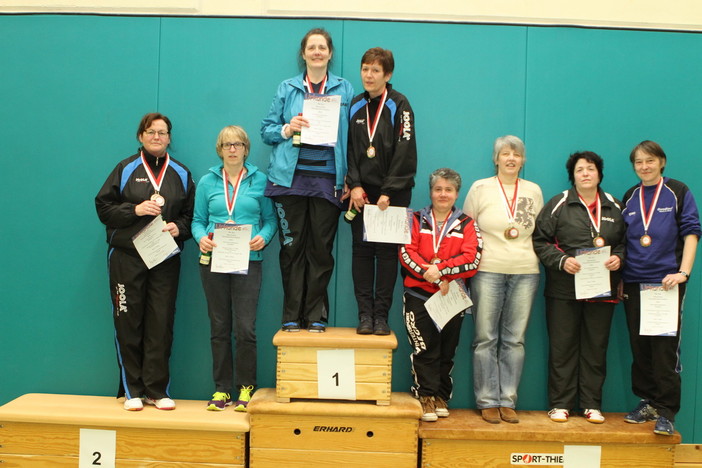 In dem mit 12 Teilnehmerinnen überschaubaren Starterfeld der Seniorinnen 50 erreichten Ulrike Kretschmer (TTC Salmünster), Silvia Komorowski (TV Cölbe), Claudia Gemeinhard (TSV Marbach) und Monika Geissel (VfL Lauterbach) das Halbfinale, das zur direkten Qualifikation für die Deutschen Meisterschaften ausreichte. Mit einem klaren 3:0 setzte sich die Favoritin Kretschmer gegen Gemeinhardt durch. Das zweite Halbfinale zwischen Geissel und Komorowski ging über die volle Distanz von fünf Sätzen. Am Ende konnte Komorowski über den Einzug ins Endspiel jubeln. Ulrike Kretschmer setzte sich dann auch im Endspiel gegen Silvia Komorowski mit 3:0 durch.