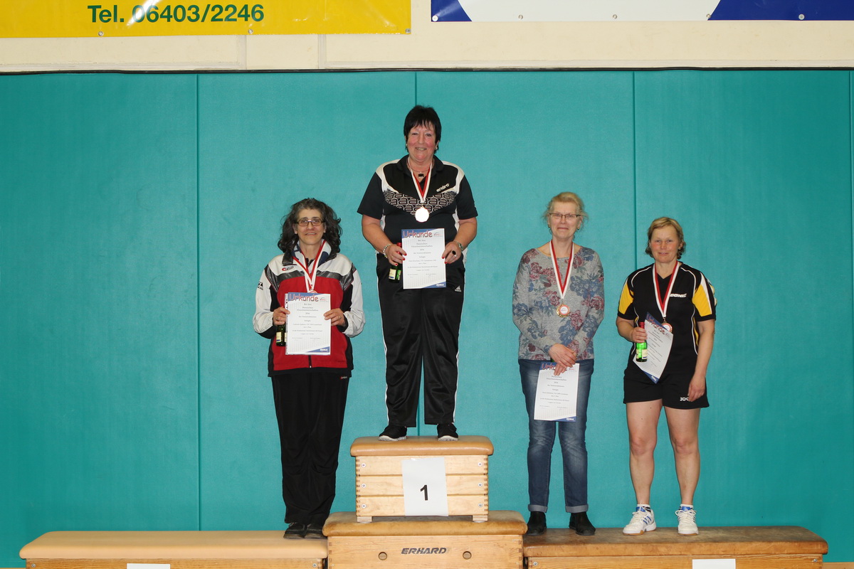 Die Seniorinnen 60 ermittelten in zwei Gruppen die Teilnehmerinnen an der KO-Runde. Für das Halbfinale qualifizierten sich Petra Kirschner (TTC Salmünster), Sigrid Kaiser (Kasseler Spvgg Auedamm), Gabriele Spöhrer (VfL Lauterbach) und Doris Hallstein (TuS Griesheim). Das Endspiel gewann Petra Kirschner mit 3:0 Sätzen gegen Gabriele Spöhrer. Den dritten Platz, der ausgespielt werden musste, belegte Sigrid Kaiser.