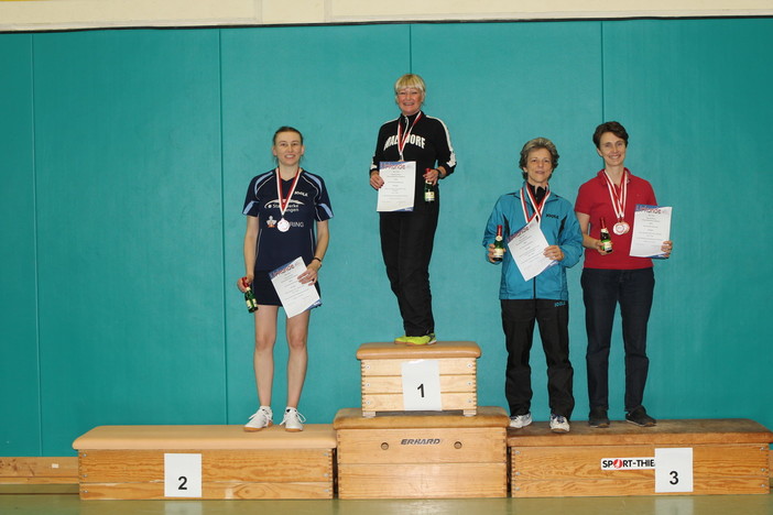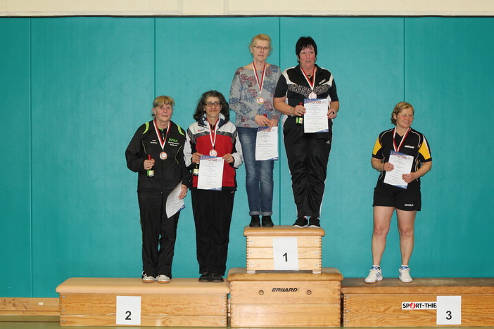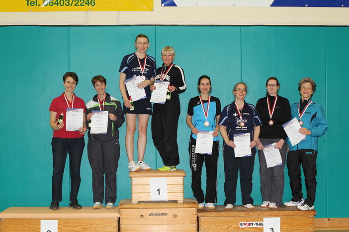 Bei den Seniorinnen 40 war das Teilnehmerfeld, bedingt durch die sehr guten Platzierungen bei den letztjährigen Deutschen Meisterschaften in Bielefeld, qualitativ nicht so stark besetzt. Kerstin Segeth, Tina Acker, Katja Heidelbach, die 1., 2. und 3. wurden und Petra Zeitz, die im Viertelfinale ganz knapp mit 2:3 Sätzen in der Verlängerung unterlegen war, sind direkt für die diesjährigen Deutschen in Kassel qualifiziert. Da auch noch andere Spielerinnen kurzfristig absagen mussten waren lediglich 13 Starterinnen bei den Seniorinnen 40 in Langgöns. Diese Spielerinnen wurden in 4 Gruppen eingeteilt, wobei die jeweiligen Gruppenköpfe auch die KO-Runde als Gruppenersten erreichten. Sowohl die Viertelfinal- als auch die Halbfinalspiele endeten mit 3:0 – Sätzen. Für’s Halbfinale qualifizierten sich Ellen Smolka (TTC Langen), Lynn Aspinall (RS Hofheim), Silke Cezanne und Manuela Keiels-Huhnstock (SV RW Walldorf). In diesen Halbfinalspielen setzten sich die an Position eins und zwei gesetzten Smolka und Cezanne durch und bestritten das Finale. Die am Schluß, verdiente Siegerin, hieß Silke Cezanne – sie wurde damit zum ersten Mal Hessenmeisterin im Seniorinnenbereich. Die beiden sicherten sich auch den Meistertitel im Seniorinnen 40-Doppel-Wettbewerb. Das Endspiel gewannen sie mit 3:1 Sätzen gegen Lynn Aspinall/Tanja Brunnhölzl. Den dritten Platz belegten Nicole Aeberhard/Beate Merten und Melanie Netz/Manuela Keiels-Huhnstock.