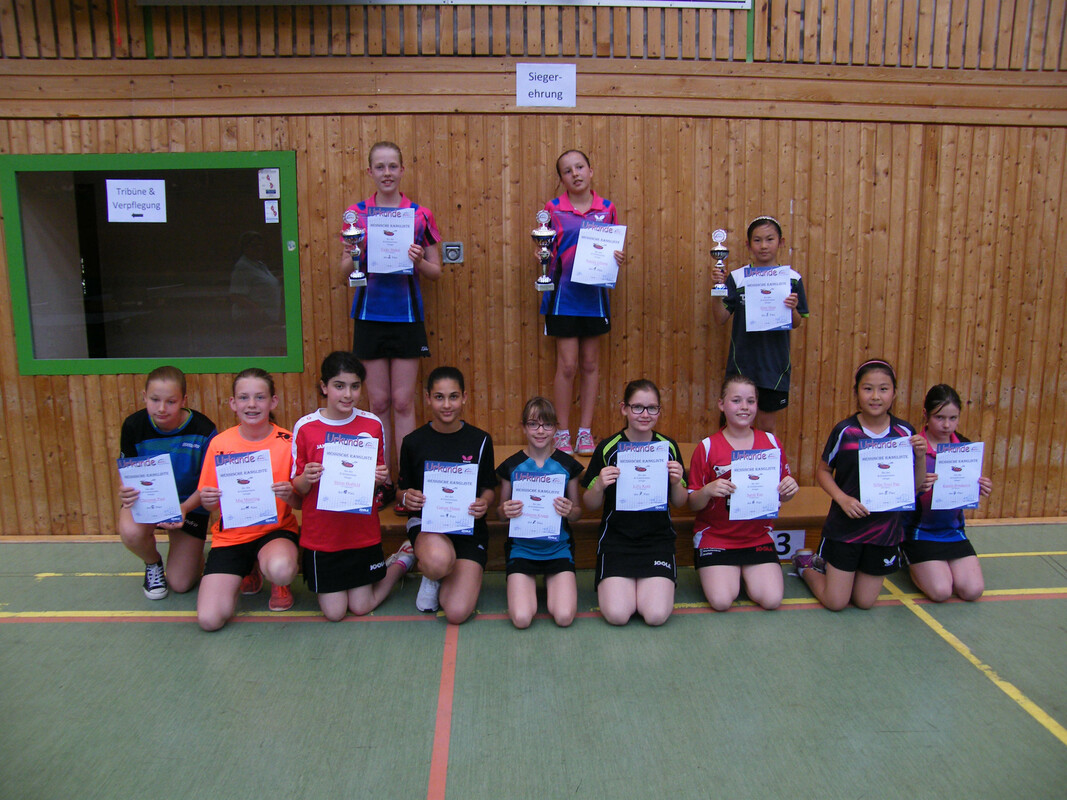 Bei den Mädchen entwickelte sich ein Zweikampf zwischen Natalie Gliewe (TV 1891 Bürstadt) gegen Vorjahressiegerin Vicky Jöckel (TTG Vogelsberg Herbstein). Es kam zu einem echten Endspiel am Ende der Veranstaltung, in dem sich Natalie Gliewe gegen Vicky Jöckel 11:7, 11:5, 8:11, 12:14 und 11:6 durchsetzte. Spannung im Kampf um Platz drei. Trotz der 14:12, 7:11, 6:11, 12:10 und 13:15 Niederlage von Sirui Shen (TSV Nieder-Ramstadt) gegen Ksenia Bondareva (VfR Fehlheim 1929) setzte sich Suri Sen auf Grund des besseren Satzverhältnisses durch.