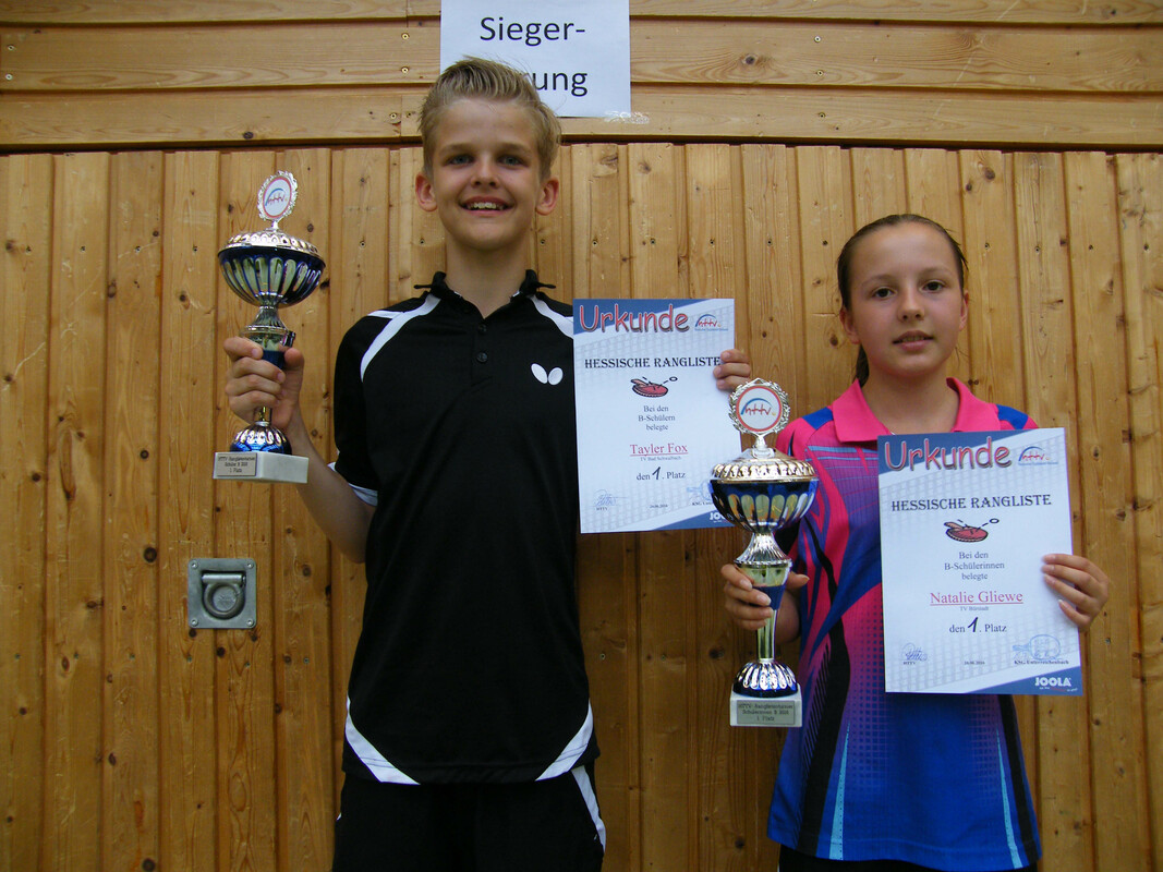In der Schüler-B-Klasse blieb kein Akteur ungeschlagen. Am Ende trat Tayler Fox (TV 1861 Bad Schwalbach) die Nachfolge von Edin Donlagic (DJK SV Eiche Offenbach) an. Tayler Fox kassierte zwar in der Vorrunde eine Niederlage gegen Alessandro Pistara (Eintracht Frankfurt), die dann auch in die Endrunde übernommen wurde, sowie eine Niederlage gegen Christian Schmirler (TTC Florstadt), setzte sich aber durch das bessere Satzverhältnis vor Alessandro Felzer (DJK SV Eiche Offenbach) und Alwin Bläser (KSG Unterreichenbach), die alle 9:2-Spiele erreichten, durch.