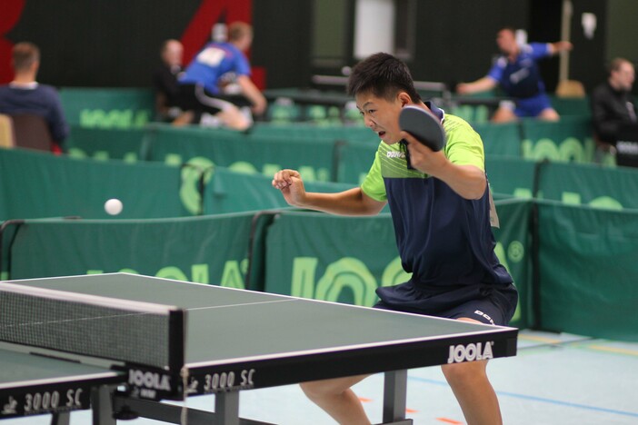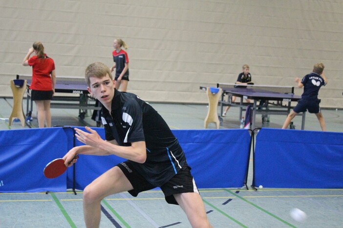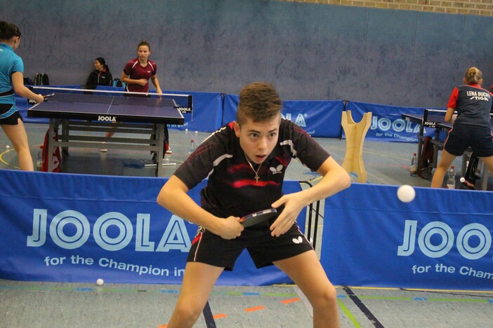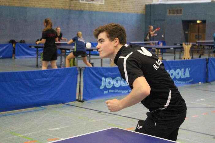 Durch eine tolle Steigerung im Halbfinale zog Fan Bo Meng gegen Alexander Gerhold (NSU Neckarsulm) nach 7:11 und 6:11 durch das 11:7, 11:8, und 11:2 ins Endspiel ein. Auch im Finale ging es über die volle Distanz, wobei Fan Bo Meng gegen Jonah Schlie (TSV Lunestadt) im entscheidenden Durchgang 7:11 verlor. „Für Fan Bo war es eine tolle Steigerung, denn in der Vorwoche verlor er noch 0:3 und diesmal lag er im Entscheidungssatz 6:4 vorn“, lobte Peter Engel seinen Schützling. Das Spiel um Platz fünf verpasste Tom Schmidt, als er gegen Tom Mykietyn (TTC Vernich) im fünften Satz 10:12 unterlag. Durch den Sieg gegen Benno Oehme (SV Dresden) wurde er Siebter