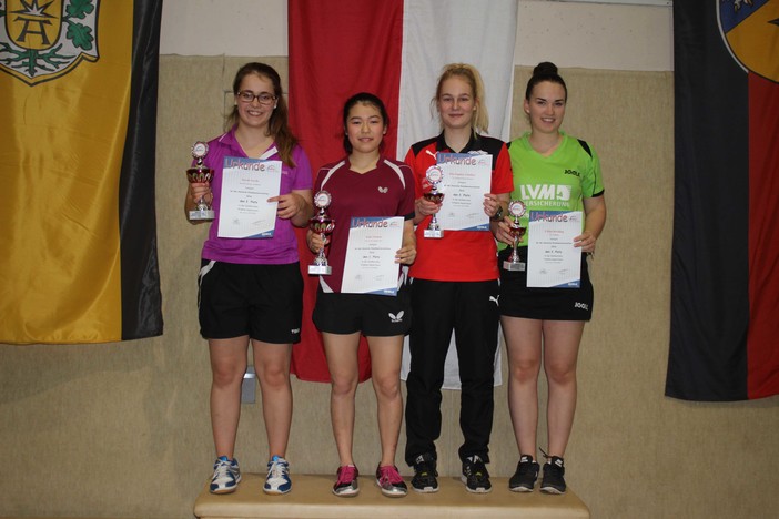 Weibliche Jugend Einzel: 1. Yuki Tsutsui (TTC G.-W. Staffel), 2. Sarah Grede (Kasseler Spvgg. Auedamm), 3. Ella-Sophia Günther (TTG Margretenhaun-Künzell), Céline Kreiling (TTC Wißmar), 5. Julia Baligács (TTC Eintracht Pfungstadt), Katharina Hardt (TSG Oberrad), Elisa Mest (TG Oberjosbach) und Ayumu Tsutsui (TTC G.-W. Staffel), 9. Vlora Hasani (TTG Margretenhaun-Künzell), Miriam Heidelbach (Sportclub Niestetal), Anna Jansen (TSV Langstadt), Clara Meinel (DJK Blau-Weiß Münster), Theresa Neumann (1. TTV Richtsberg), Sarah Oltsch (TTC Salmünster), Marlene Reeg (SV Ober-Kainsbach) und Laura Rosenberger (TV Bürstadt); in der Vorrunde gescheiert: Gruppendritte: Julia Heidelbach (Sportclub Niestetal), Naomi Jahn (TTC OE Bad Homburg), Vicky Jöckel (TTG Vogelsberg Herbstein/Lanzenhain), Sifan Sissi Pan (VfR Fehlheim), Sarah Rau (SG RW Büchenberg), Jil Rosenthal (TSV Langstadt), Michelle Schmidt (SG Bruchköbel) und Hannah Wytrickus (VfR Fehlheim), Gruppenvierte: Anabel Beck (DJK SG Blau-Weiß Lahr), Alina Beng (TuS Meimbressen), Vivien Jöckel (TTG Vogelsberg Herbstein/Lanzenhain), Lisa Neuber (TTF Oberzeuzheim), Tanja Volland (TuS Nordenstadt), Jessica Wissler (TSG Oberrad), Annika Wölfelschneider (TSV Höchst) und Fabienne Zorn (TV Bürstadt).