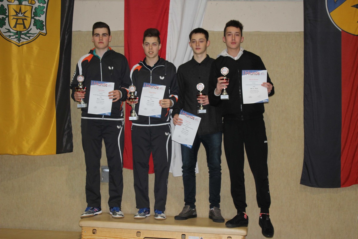 Vor dem Jugendfinale Niels Felder gegen Adam Janicki, wo es um die Nachfolge von Marco Grohmann (TTV Stadtallendorf) ging, meinte der Vorjahrsdritte Niels Felder: „Wir kennen uns sehr gut, da wir fast jede Woche drei- bis viermal zusammen trainieren. Das Spiel ist offen und eine Kleinigkeit kann über den Sieg entscheiden.“ Adam Janicki musste nach gewonnenem erstem Satz zwar den Ausgleich hinnehmen, aber besonders seine druckvolle Rückhand brachte in den beiden folgenden Sätzen den Sieg. „Niels hat mir alles abverlangt. Ich habe mich voll an zurechtgelegte Taktik gehalten und hoch konzentriert gespielt“, analysierte Adam Janicki seinen Erfolg.