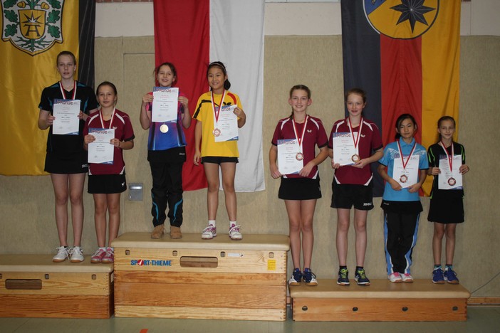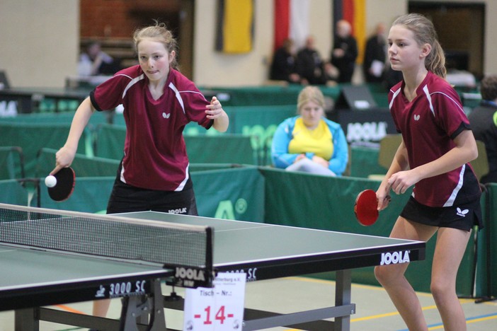 Schülerinnen B: 1. Sifan Sissi Pan/Ksenia Bondareva (VfR Fehlheim), 2. Vicky Jöckel/Natalie Gliewe (TTG Vogelsberg Herbstein/Lanzenhain/TV Bürstadt), 3. Sirui Shen/Brenda Rühmkorff (TSV Nieder-Ramstadt) und Mia Meteling/Tiziana Schuh (TTF Oberzeuzheim), 5. Svenja Erhardt/Gamze Hasan (VfR Fehlheim/TSV Höchst), Anastasia Dietz/Julia Konnertz (TSV Groß-Eichen/TTG Kirtorf-Ermenrod), Amelie Kempa/Hannah Krießbach (TTC Offheim/TTF Oberzeuzheim) und Katharina Krätschmer/Sarah Rau (SV Germ. Inheiden/SG RW Büchenberg), 9. Kim Wamser/Johanna Knapp (TSK SW Rimbach), Melanie Schinköthe/Anna Lückel (TSV Eintr. Naumburg/TTC Calden-Westuffeln), Leonie Breitwieser/Isabela Maximov (DJK-TTC Ober-Roden/SG Sossenheim), Emily Riebel/Cheyenne Paul (Turnerschaft Großauheim/TTV Gründau), Sarah Timur/Sarah Peter (SG Anspach/TTC Merkenbach), Sophie Giebener/Dhara Ries (TTC OE Bad Homburg/DJK Blau-Weiß Münster) und Natalie Jahn/Lara Saha-Lottenburger (TTC OE Bad Homburg/TTV Korbach)
