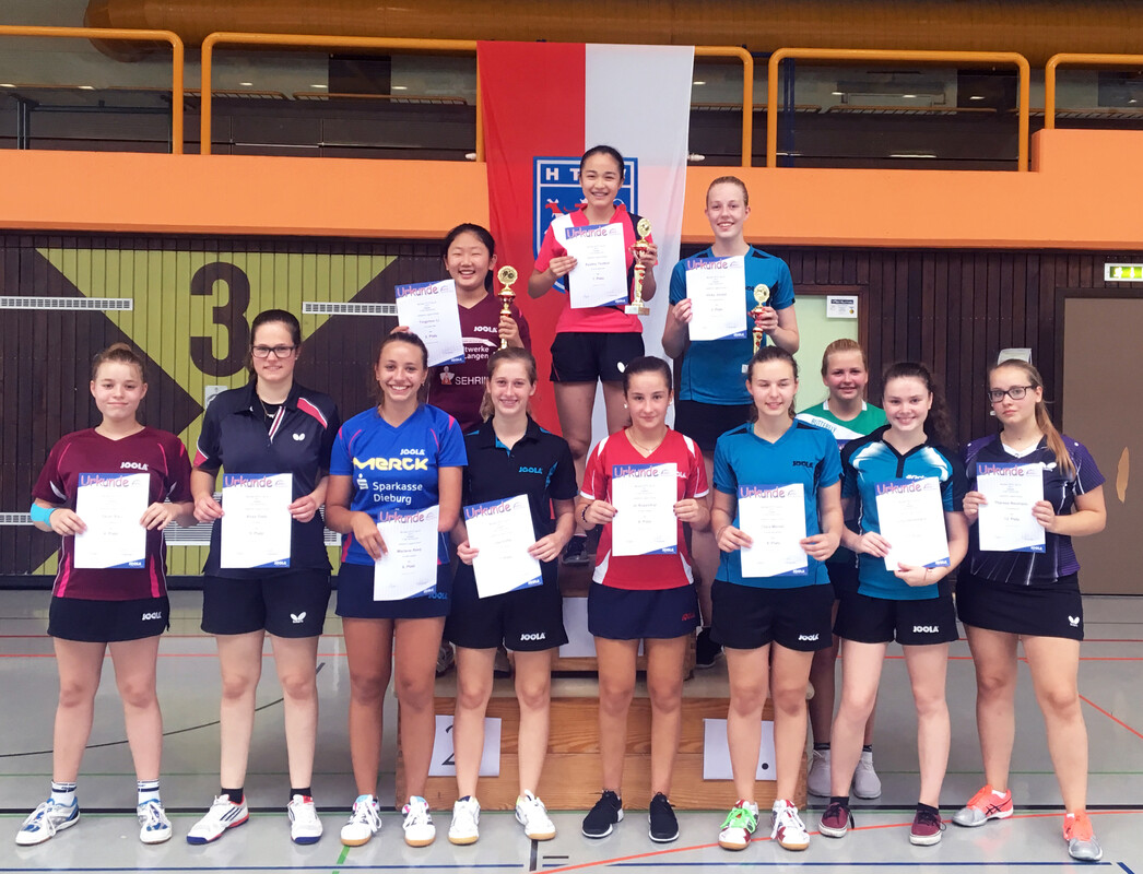 Ayumu Tsutsui (TTC G.-W. Staffel) wurde bei der weiblichen Jugend ihrer Favoritenrolle gerecht. Der Erfolg war am Ende allerdings hauchdünn. Denn genau wie die Siegerin erreichte Tingzhuo Li (TTC Langen) 10:1-Spiele. Das Dop-Duell hatte Tingzhuo Li 12:14, 8:11, 11:7, 11:9 und 13:11 gewonnen. Ayumu Tsutsui gab sich aber ansonsten keine Blöße und gewann sechsmal 3:0 und viermal 3:1. Lea Höfle (TV Bürstadt) war es, die durch das 11:9, 7:11, 11:4 und 12:10 Tingzhuo Li in der sechsten Runde bezwang und so Ayumu Tsutsui den Weg zum Sieg ebnete. Vicky Jöckel (TTG Vogelsberg) und Sarah Rau (SC Niestetal) rundeten mit Platz drei und vier die tolle Leistung der Schülerinnen ab.