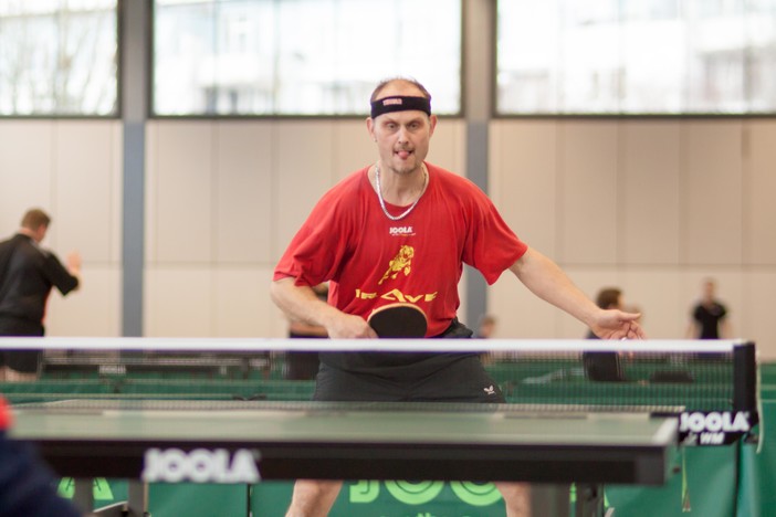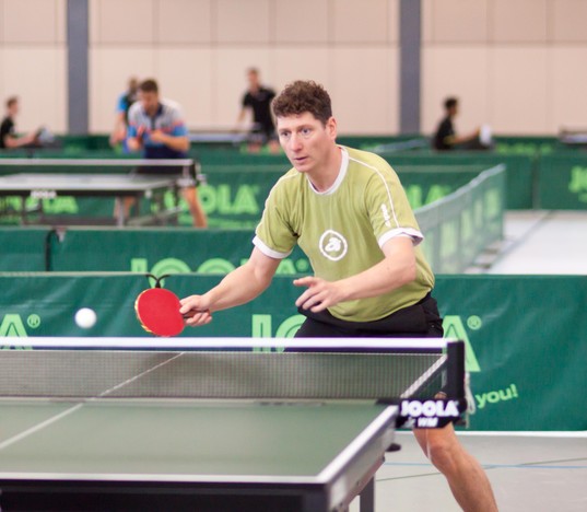 In gewohnter Manier, nach dem „Schweizer System“, stand nach etwas mehr als drei Stunden und sechs Spielrunden der Sieger fest. Der 40-jährige Hasan Dogru vom SV B.-G. Darmstadt setzte sich mit nur zwei Satzverlusten ungeschlagen mit sechs Siegen durch Nachdem sich Dogru im letzten Jahr noch mit Platz zwei begnügen musste, reichte es in diesem Jahr zum großen Coup. Entsprechend zufrieden war Dogru nach den anstrengenden Spielen, denn ganz so einfach war es nicht, „ich musste mich in jedem Spiel anstrengen und für mich ist es schwierig, wenn Gegner passiv spielen. Ich habe in jedem Spiel ordentlich geschwitzt“, sagte der glückliche Sieger direkt nach der letzten Partie. Dogru sicherte sich die Siegprämie von 200,00 Euro und zwei Wochenendtickets für die Seamaster German Open 2018 in Bremen. Zweiter wurde Michael Niederalt, der Stockstädter ist in der Saison für den DJK Niedernberg im Bayrischen Tischtennis-Verband aktiv. Er musste sich mit 5:1 Siegen lediglich Hasan Dogru geschlagen geben. Auch Niederalt war am Ende sichtlich zufrieden, „ich freue mich schon auf die Turniere im kommenden Jahr, Platz zwei in diesem Jahr ist super“. Dritter wurde Michael Neiter (TTV Gründau), vor Nachrücker Marco Mlynarz (TV Sterzhausen) und Daniel Martin (TSV Nieder-Ramstadt), die am Ende alle eine 4:2-Bilanz aufweisen konnten. Keiner der Spieler musste am Ende sieglos nach Hause gehen, auch wenn „Marathonmann“ Steve Häde (TSG Züntersbach), mit 96 Teilnahmen der aktivste Spieler, am Ende den 14. Platz belegte, konnte er im letzten Spiel einen Sieg sichern.