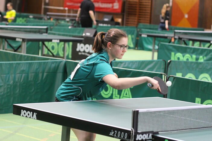 Geburtstagskind Lilly Kern (TTC Pfungstadt) lag gegen Materialspielerin Sabina Jaschin (TTC Salmünster) 1:2 hinten. Ihr gelang es aber sich immer besser einzustellen und durch das 11:6 und 11:8 kam sie an ihrem Ehrentag zu der Hessenmeisterschaft. Die sehr gut harmonierenden Mia Meteling/Tiziana Schuh (TTF Oberzeuzheim) kassierten zwar zweimal den Satzausgleich, behielten aber im entscheidenden Durchgang die Nerven und gewannen 11:9 gegen Corinna Luyven/Lilly Kern (TTC RW Biebrich/TTC Pfungstadt).