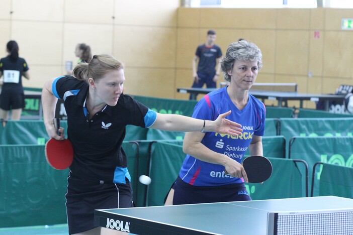 Die Jüngste war die Beste im Feld der Damen B. Sirui Shen (TSV Nieder-Ramstadt), verlor zwar die beiden ersten Sätze gegen Anabel Beck (DJK SG Blau-Weiß Lahr), schaffte es aber noch das Spiel zu drehen. Nur einen Satz gaben Chantal Röhl/Miriam Kieselbach (SV Eberstadt/TTV GSW) bei ihrem Erfolg im Doppel ab, wo sie im Finale gegen Laura Wunder/Fabienne Zorn (TV Bürstadt) 3:0 gewannen.