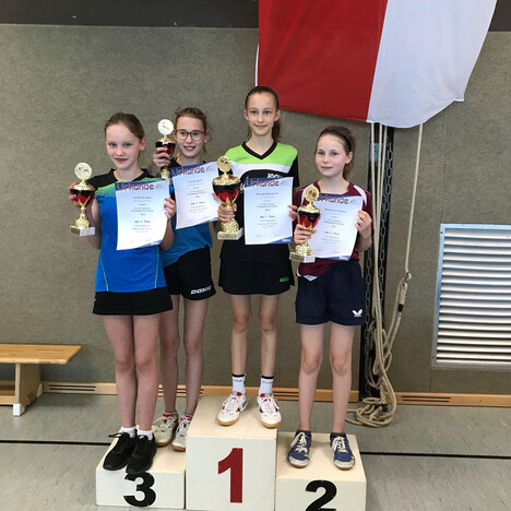 Schülerinnen AK1 (Jg): 1. Brenda Rühmkorff (TSV Nieder-Ramstadt), 2. Hannah Krießbach (TTF Oberzeuzheim), 3. Carolin Beck (DJK SG Blau-Weiß Lahr), 3. Amelie Kempa (DJK SG Blau-Weiß Lahr), 5. Anna Eifert (TTG Vogelsberg), 5. Salma Ezzahid (DJK-SG Zeilsheim), 5. Anna Lobert (Turnerschaft Großauheim), 5. Laura Reuter (TV Gedern), 9. Marina Bolz (SG Marbach), 9. Sophia Lara Dietrich (TG Naurod), 9. Sophia Schütz (TSV Nieder-Ramstadt), 9. Lisa Willemsen (TTC RW Biebrich), 13. Marietta Bläse (SV RW Leimsfeld), 13. Melanie Bretzke (TSV Ihringshausen), 13. Hannah Eckhardt (SC RW Riebelsdorf), 13. Karolina Herbert (SV Darmstadt 98), 13. Megan Jüch (Turnerschaft Großauheim), 13. Finja Tobegen (DJK B.-W. Bieber),Lara Fadigoso (TTC Langen-Brombach),Pia Hördt (SG Hüttenfeld),Lina Ohlemacher (TuS Breithardt),Sheila Rohde (TTC Heppenheim).