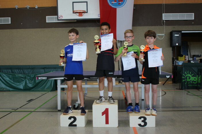 Schüler AK1 (Jg): 1. Tyler Köllner (SVH Kassel), 2. Justin Uong (TTC OE Bad Homburg), 3. Noël Kreiling (TTC Wißmar), 3. Bastian Schubert (VfR Fehlheim), 5. Alan Hadzikaric (TV Wallau), 5. Noel Montimurro (TTC G.-W. Staffel), 5. Bennet Teppich (TTC RhönSprudel Fulda-Maberzell), 5. Sean Wilson (TV Bad Schwalbach), 9. Simon Fuß (TTC Langen), 9. Azfar Khan (TV Dreieichenhain), 9. Cristian Macellaro (TV Bad Schwalbach), 9. Luca Minor (TTC G.-W. Staffel), 9. Ngoc Anh Nguyen (TTV Offenbach), 9. Maximilian Reimann (TuS Breithardt), 9. Finn Welcker (TTC Florstadt), 9. Anouar Zaari (TV Eschersheim), 17. Fatih Eren Dingil (SV Darmstadt 98), 17. Calvin Habel (TV Kostheim), 17. Jonas Kröll (Neuenhainer TTV), 17. Junias Renzel (TTG Büdingen-Lorbach), 21. Alessandro Barbera (TUS Dehrn), 21. Mark Baumann (TTC Bad Camberg), 21. Onurhan Eroglu (TUS Dehrn), 21. Marc Fiedler (TSV Weyhers-Ebersberg), 21. Ole Hell (SG Arheilgen), 21. Jona Kapp (TSV Altenschlirf), 21. Kevin Khang Nguyen (SG Sossenheim), 21. Tim Presser (TV Bad Schwalbach), 21. Marvin Rohbanie (TG Langenselbold), 21. Artur Usatiuc (TSK SW Rimbach), 31. Johannes Eilert (GSV Eintracht Baunatal), 31. Mika Klippert (SV RW Leimsfeld), 31. Maurice Koch (SC Niestetal), 31. Jonte Kräbs (SC Niestetal), 31. Jannis Löhle (TSV Eintr. Naumburg), 31. Lukas Maier (SV RW Leimsfeld), 31. Fabian Mohr (TTG Horbach), 31. Julian Rose (TTG Morschen-Heina), 31. Simon Schneider (TTG Vogelsberg).