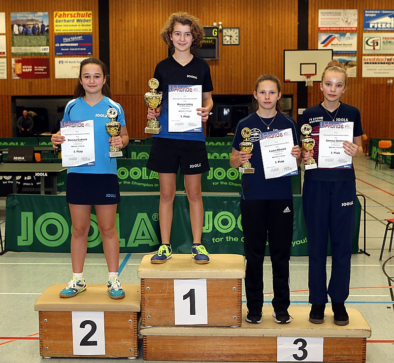 Die Titel sicherten sich Ronja Löbig (DJK Blau-Weiß Münster) und Ryan Jager (Neuenhainer TTV). „Damit hätte ich nie gerechnet“, war Ronja Löbig selbst überrascht über ihren Sieg. Als Ungesetzte deutete sie bereits in den Gruppenspielen an, dass sie sich einiges vorgenommen hatte, als sie nur einen Satz abgab und somit Erste wurde. Im Halbfinale gewann Ronja Löbig gegen die an eins gesetzte Laura Klimek (TTC Salmünster) im fünften Satz 11:9. Im Endspiel setzte sie sich gegen die ebenfalls zum Favoritenkreis gehörende Denisa Cotruta (TTC RW Biebrich) 3:1 durch.
