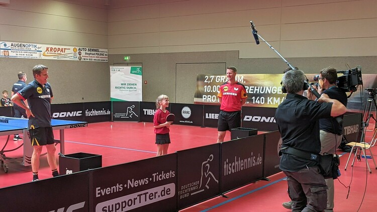 Die eingesetzten Amateurspieler rundeten das Programm ab. Neben Gabor Thies hatte die erst achtjährige Christina Heim das Glück dabei sein zu dürfen - und durfte ihre große Schwester Katharina gleich mitbringen. Christina hatte ihre ganz besondere Geschichte, hinter dem Wunsch, einmal gegen Jörg Roßkopf spielen zu dürfen. Ihr Verein TSV Langstadt hatte für März einen Tischtennis-Erlebnistag mit Helmut Hampl und eben Jörg Roßkopf organisiert. Der fiel dem Corona-Lockdown zum Opfer. Als Vater Uwe Bachmann vom HR-Termin hörte, bewarb er seine beiden Tischtennis-verrückten Töchter und erzählte ihnen erst davon, als er vom HR die Zusage hatte.